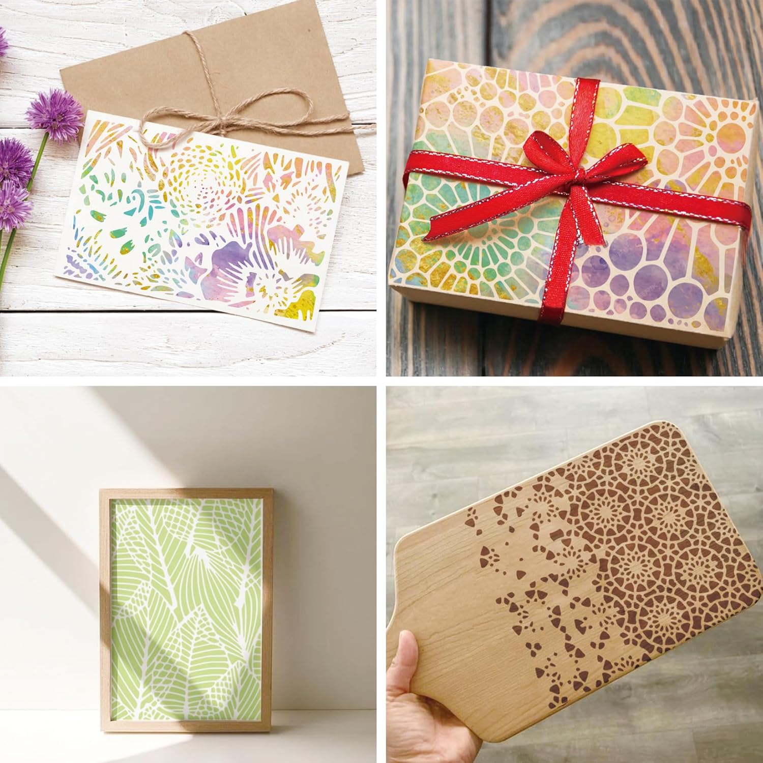 - Wide application: these texture stencils can be applied for any project, such as boat, car, wood, canvas, fabric, pillow, tile, wall, cabinet, window, door, gift boxes, scrapbooks, greeting cards, bulletin board, cookie, cakes, furniture, journal, and more