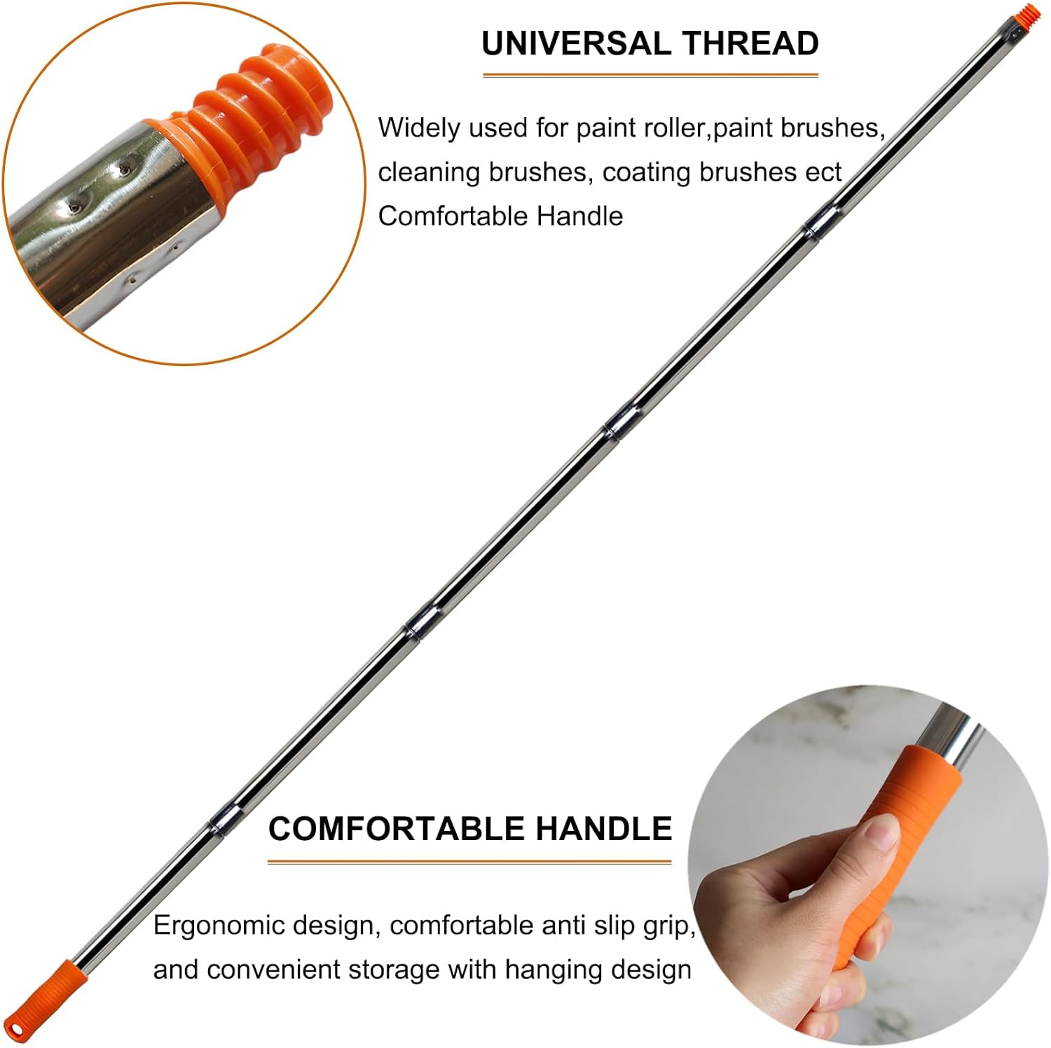 - Durable Construction: Our paint roller/Fruit Picker/Duster extension pole includes a 3-piece stainless-steel pole with threaded plastic connectors. The high-quality stainless steel ensures long-lasting use, while the plastic connectors provide a secure and stable connection.β