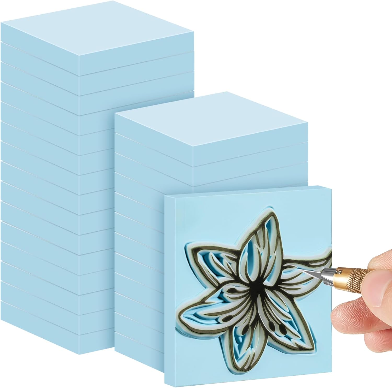 Frienda 24 Pcs 2" x 2" Rubber Carving Blocks Linoleum Blocks for Printmaking, Stamp Making, DIY Crafting, Scrapbook, Painting, Soft and Easy to Carve (Light Blue)