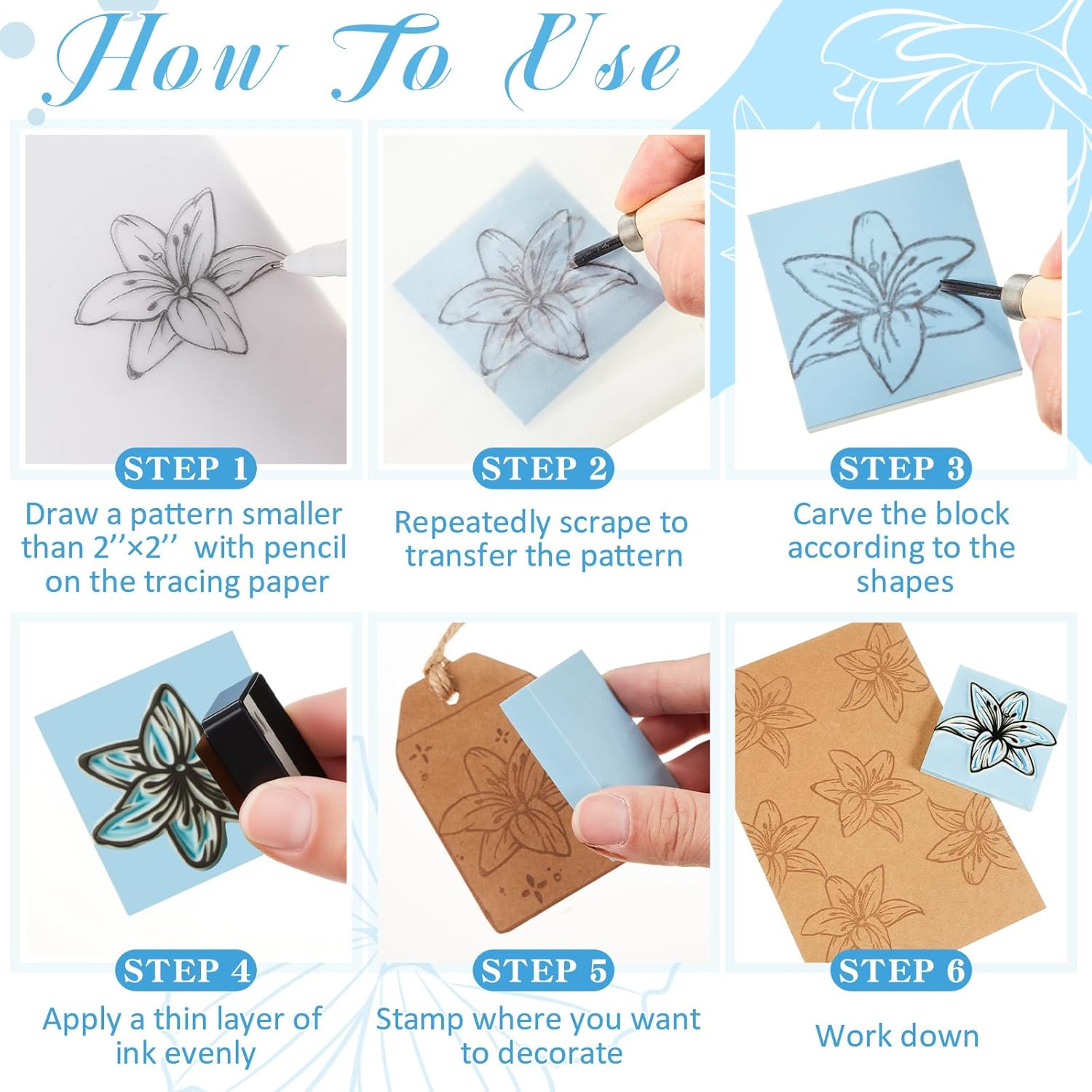 - High Compatibility: the rubber blocks accept transfers from laser printers, ink jet printers and pencil manuscripts, after transferring the patterns, you just need to carve the block according to the shapes
