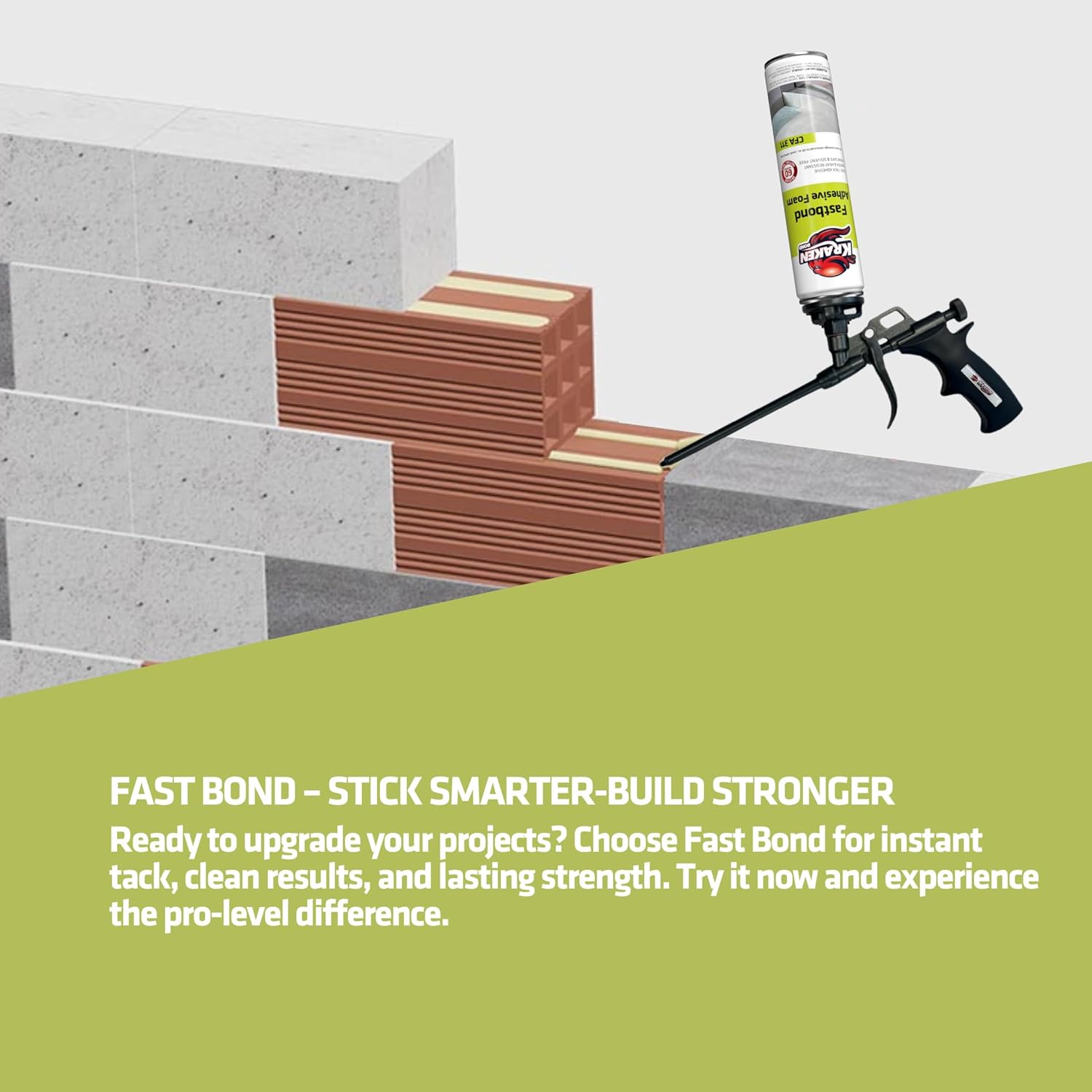 - ULTRA-FAST AND STRONG ADHESION PERFORMANCE β Kraken Fastbond Spray Foam Adhesive provides an initial grip in just 60 seconds and fully bonds materials within 5 minutes. Perfect for foam board insulation (XPS, EPS, etc.), construction adhesive applications, and thermal & sound insulation projects. Speeds up installation, saving time and labor costs.