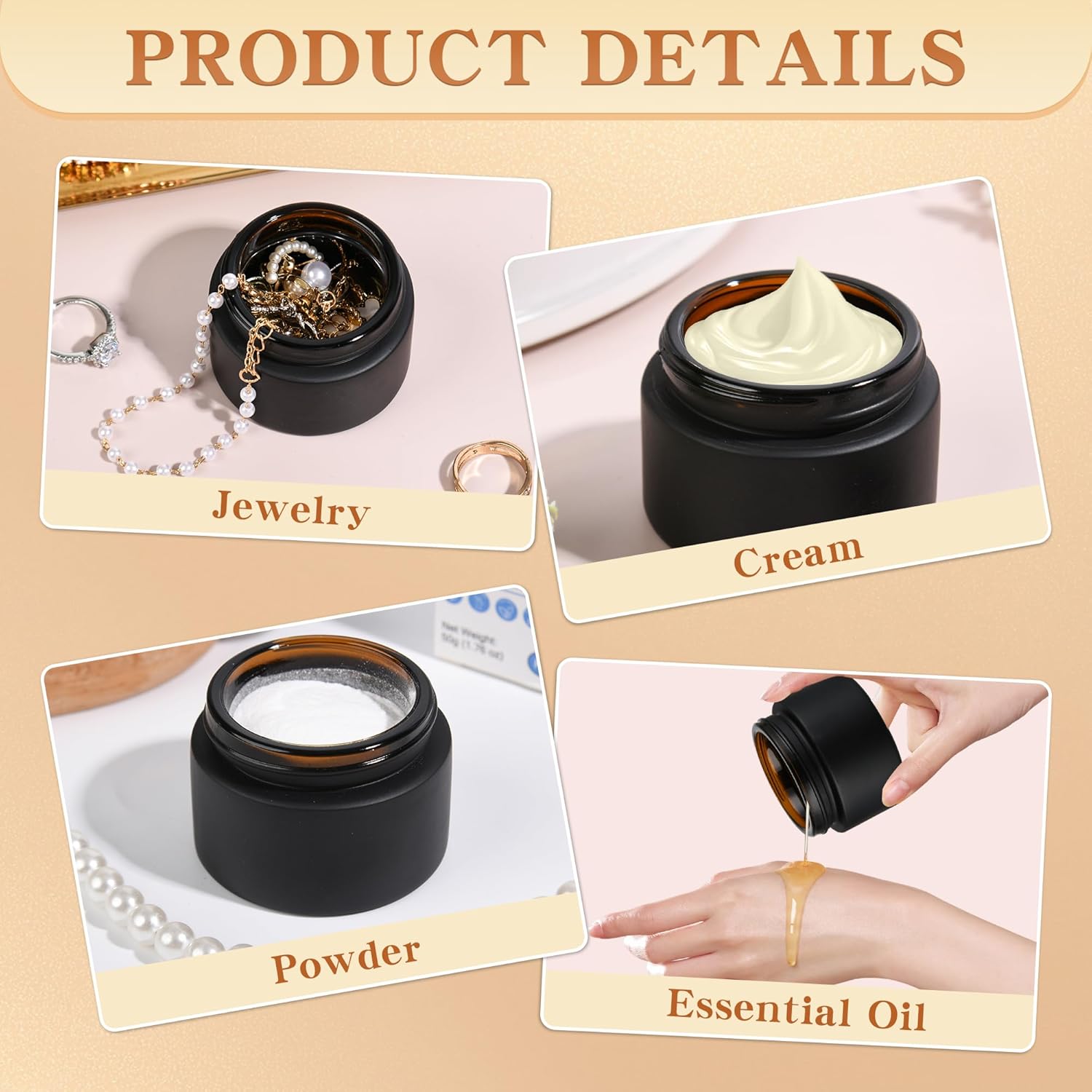 - 【Pro-Grade Organization】 Elevate your brand with luxury jars! Amber/black jars protect premium formulations, while clear jars showcase product purity. Compatible with label printers for professional branding – loved by estheticians and indie beauty brands!