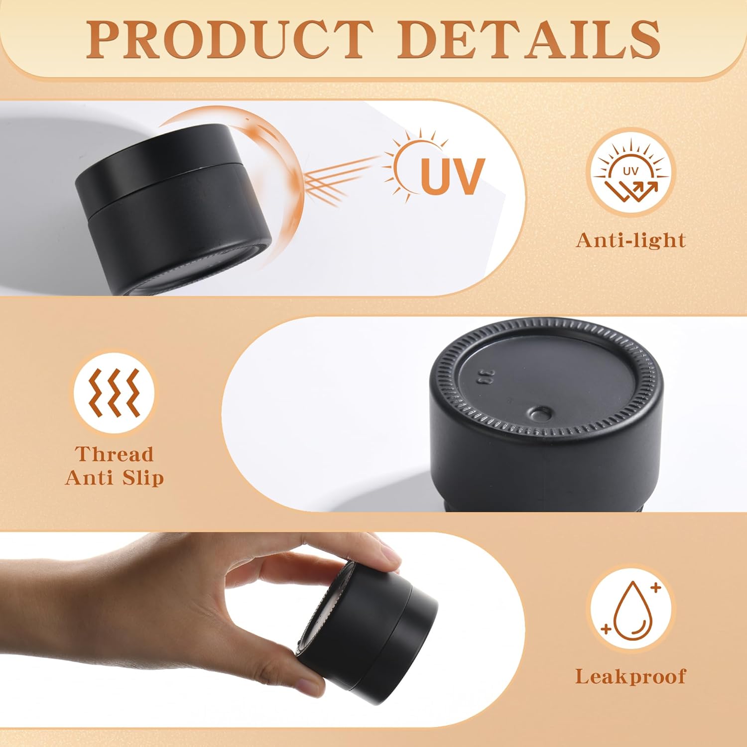 - 【Travel-Ready & Mess-Free】fits in purses and toiletry bags. Threaded lids prevent slipping, while raised jar bottoms protect against spills – ideal for gym, flights, or camping trips.