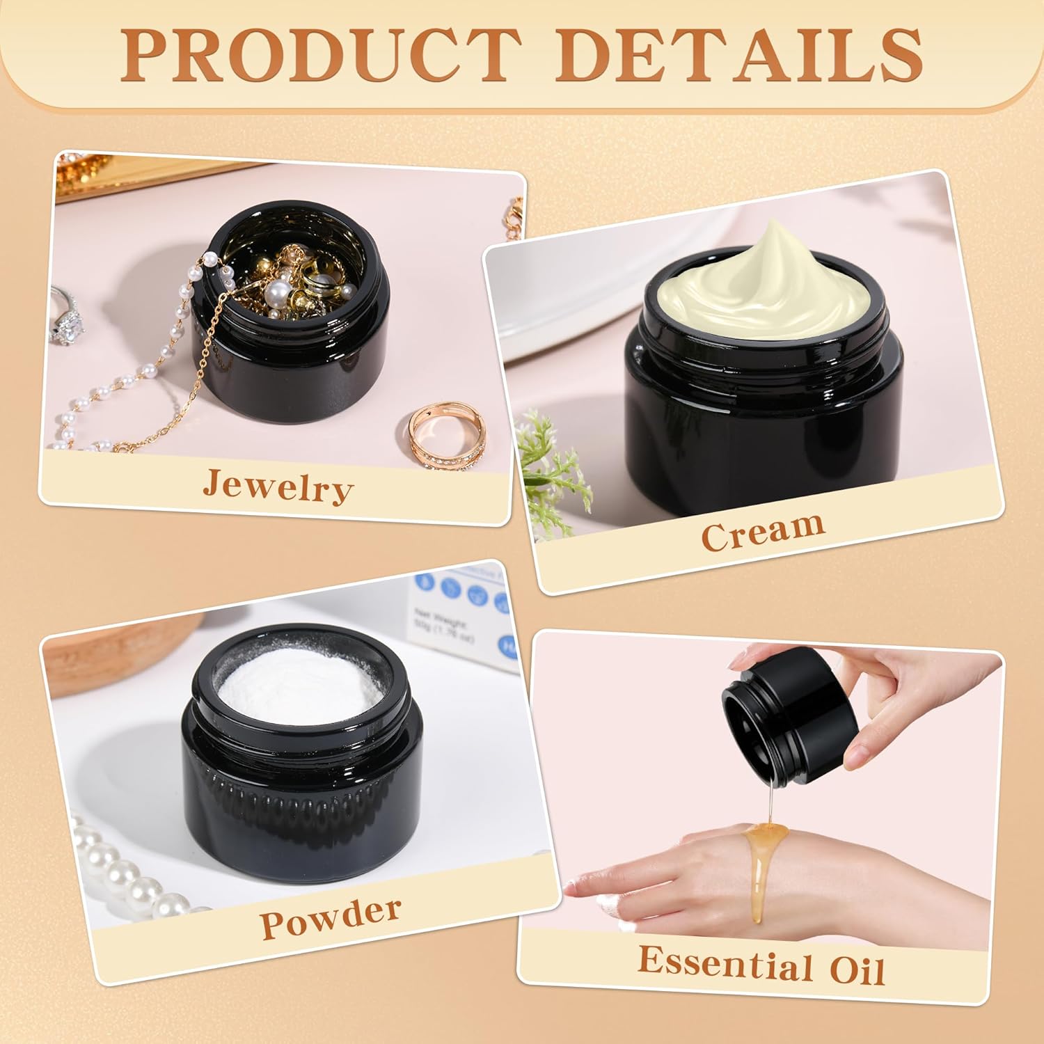 - 【Premium Airtight Glass Jars】 Crafted with thick borosilicate glass and black phenolic lids, these jars provide 100% leakproof protection. Inner silicone liners block air/moisture, ideal for light-sensitive CBD creams, organic balms, and essential oils.