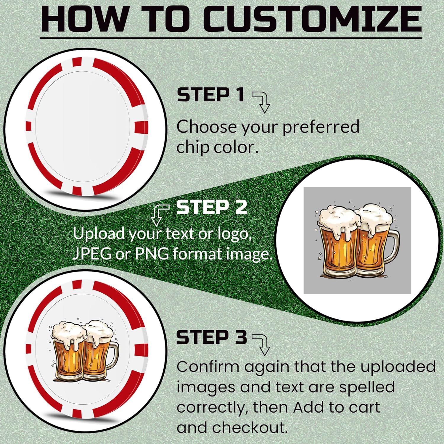 50 Custom Poker Chips, Personalized with Your own Logo, Photo or Text - 11.5g Casino Chips for Poker Gram, Tournaments, Business Card, Token