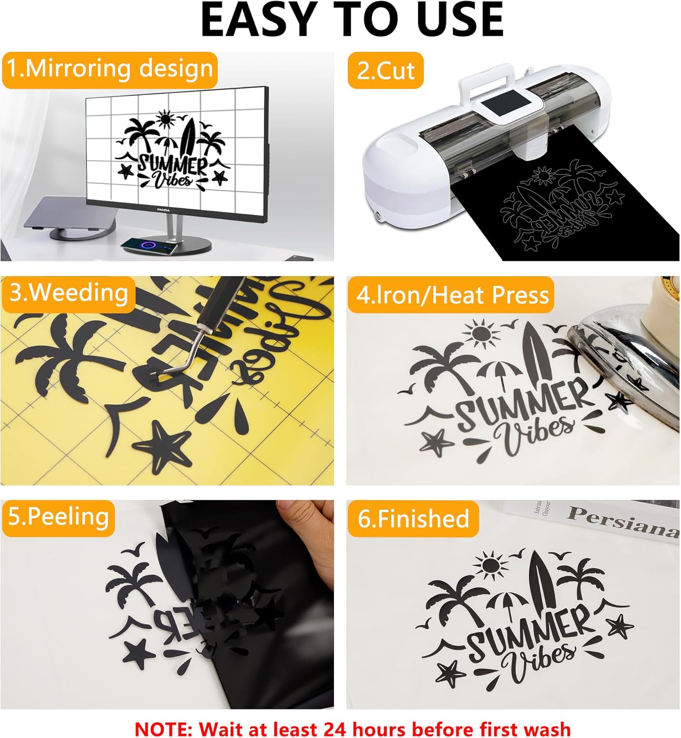- EASY TO CUT & WEED & TRANSFER: Our htv vinyl is sensitive to temperature and pressure, which can be quickly and easily to weed and peel. It is compatible with all cutter machines, most heat presses and household irons on the market, and perfect for 12x12" and 12x24" cutting mats. You can easily apply adhesive backing htv to fabric using a hot iron or hot press. Please note that it is warm peel