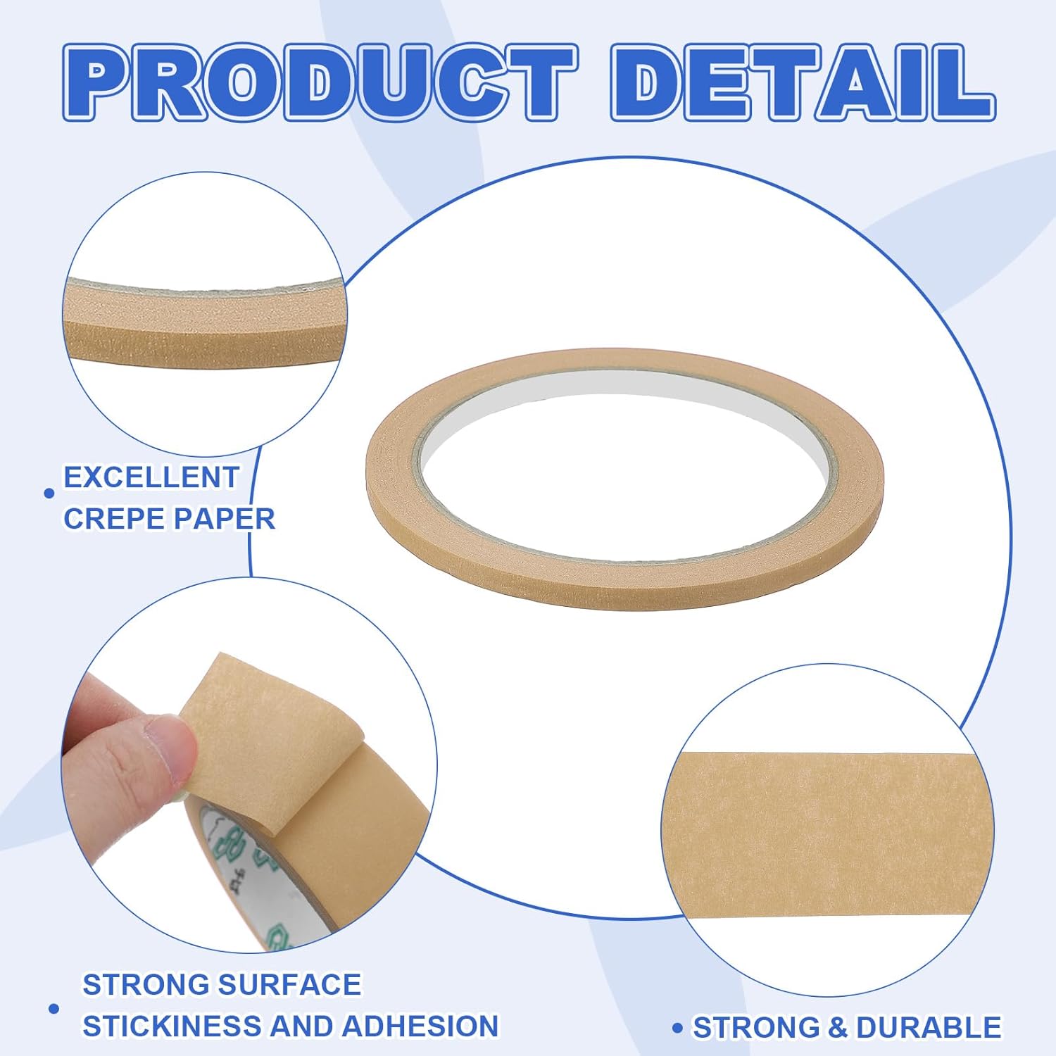 - Is there any advantages of the product? Made of excellent crepe paper material, this masking Painters tape has strong surface stickiness and adhesion, not easy to lift or curl, writable, strong and durable, easy to clean and remove, will not damage the underlying surface or leave sticky residue