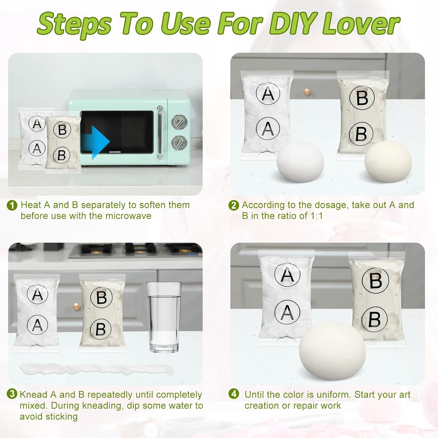 - Easy Mixing Process: just take equal parts A and B, and knead until the colors are fully blended, if the clay feels rigid, a little warming in the microwave, oven, or hot water will soften it, the easy-to-mix formulation is suitable for both beginners and seasoned artists