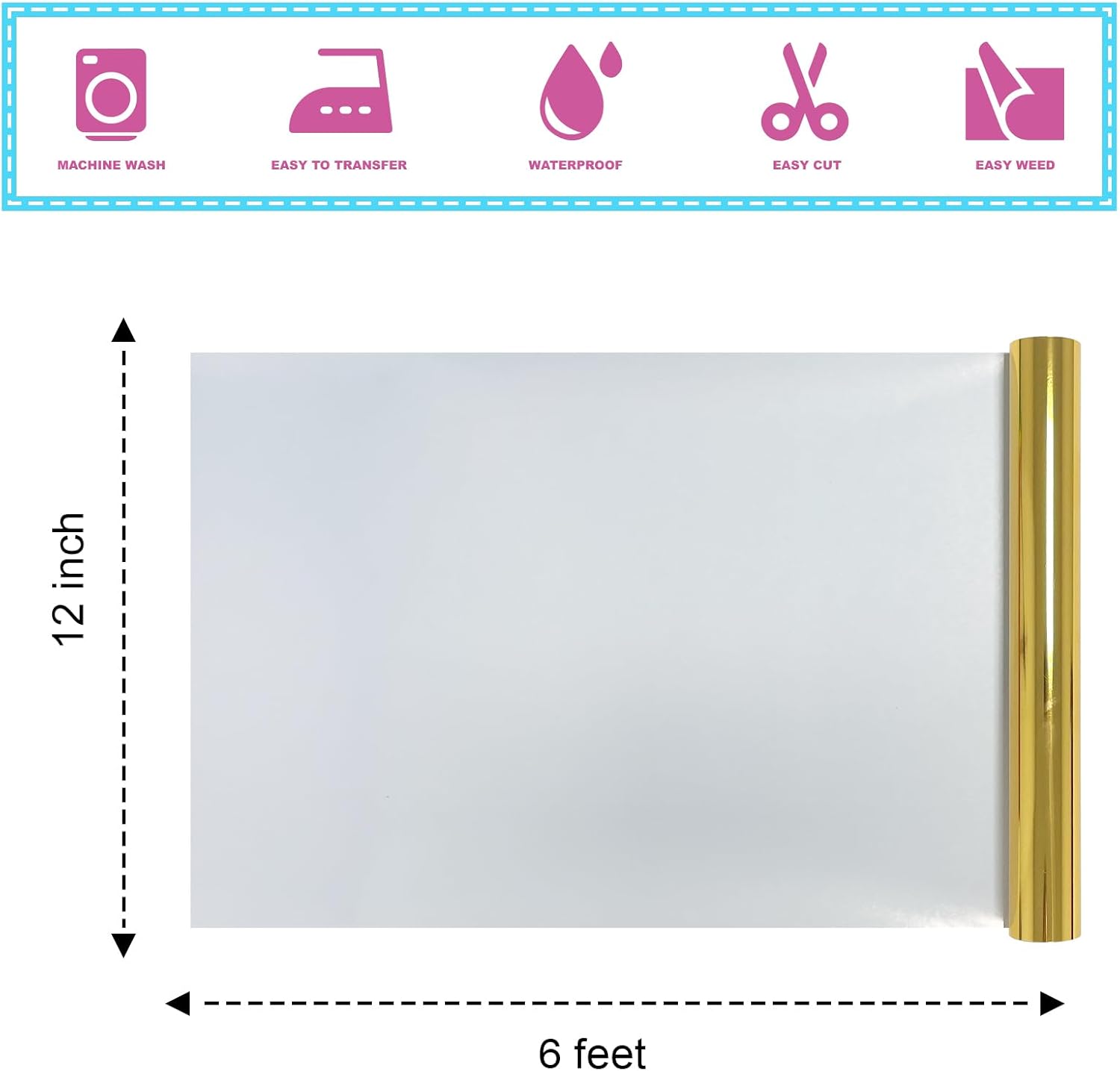 Sheet Metallic Foil Heat Transfer Vinyl 12Inch*6Ft Bundle Chrome HTV Pack inVibrant Colors for Stunning T-Shirt Designs! Perfect for DIY Heat Transfer Vinyl 12Inch*6Ft