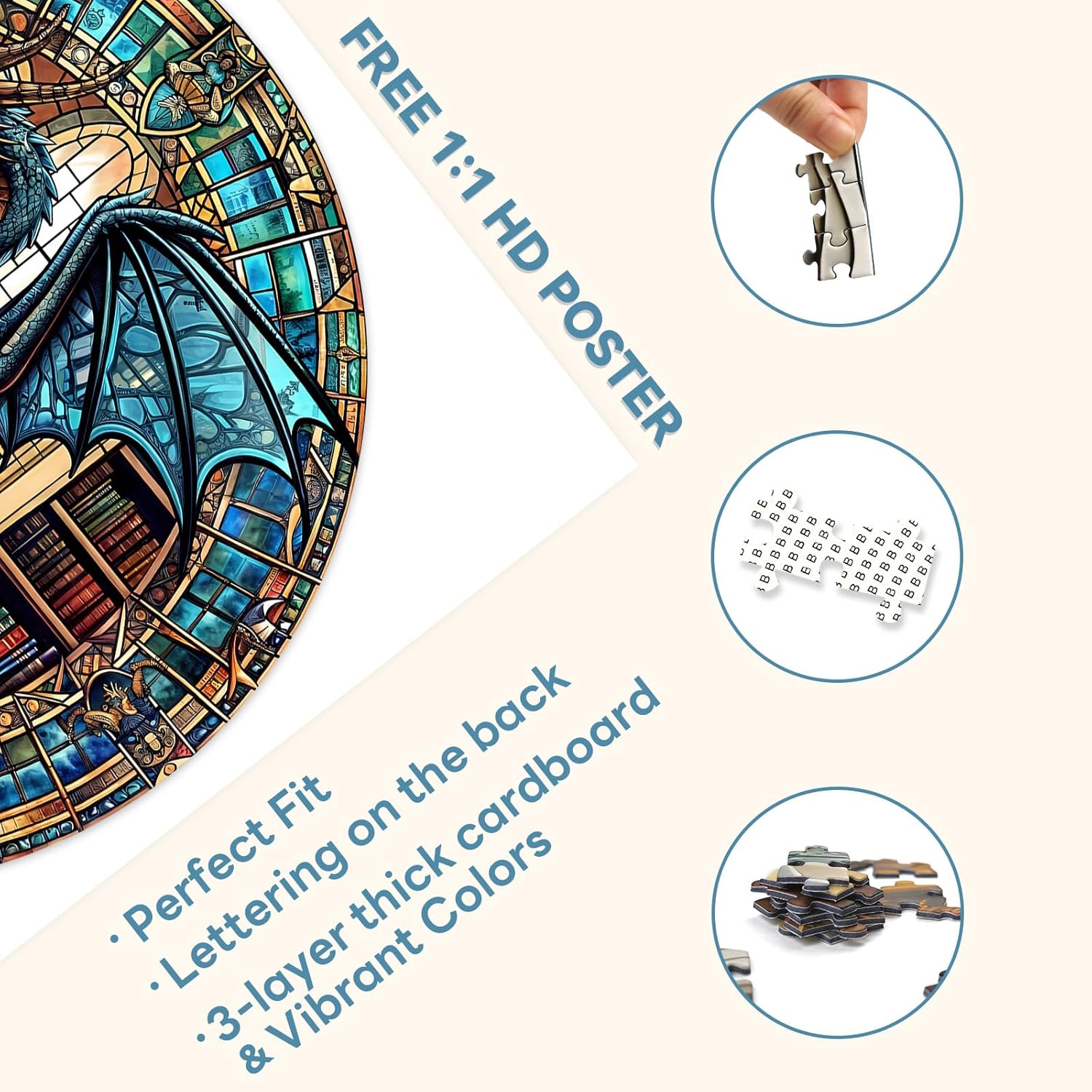Round Puzzles for Adults 1000 Pieces, Hard Difficult Challenging Puzzles for Adults, Dragon's Library Jigsaw Puzzles 1000 Pieces for Seniors, 3D Visual Flat Puzzle (26.6 x 26.6in)