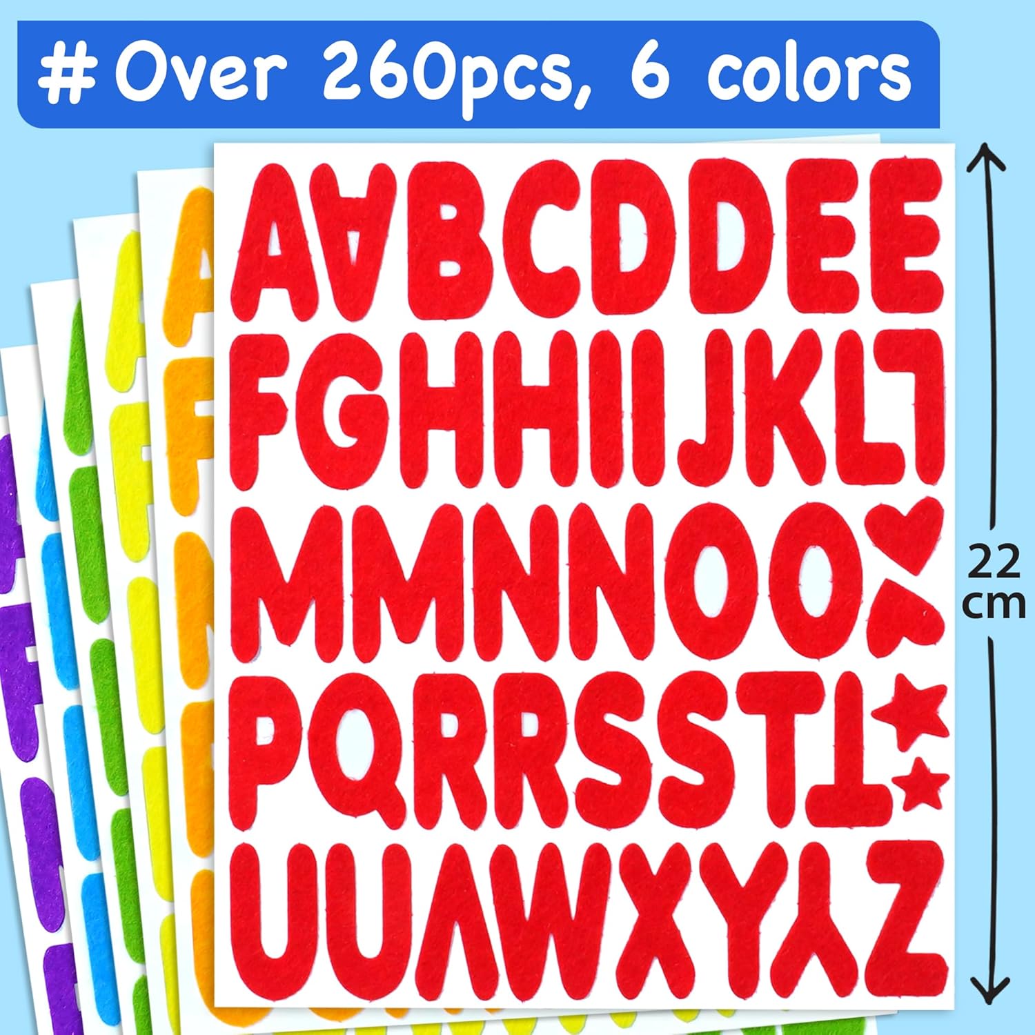 - 🌸Large-sized, Over 260 Vibrant Felt Stickers🌸 Includes a huge assortment of colorful felt alphabet stickers, perfect for endless creative projects and crafts. Easy to peel and stick.