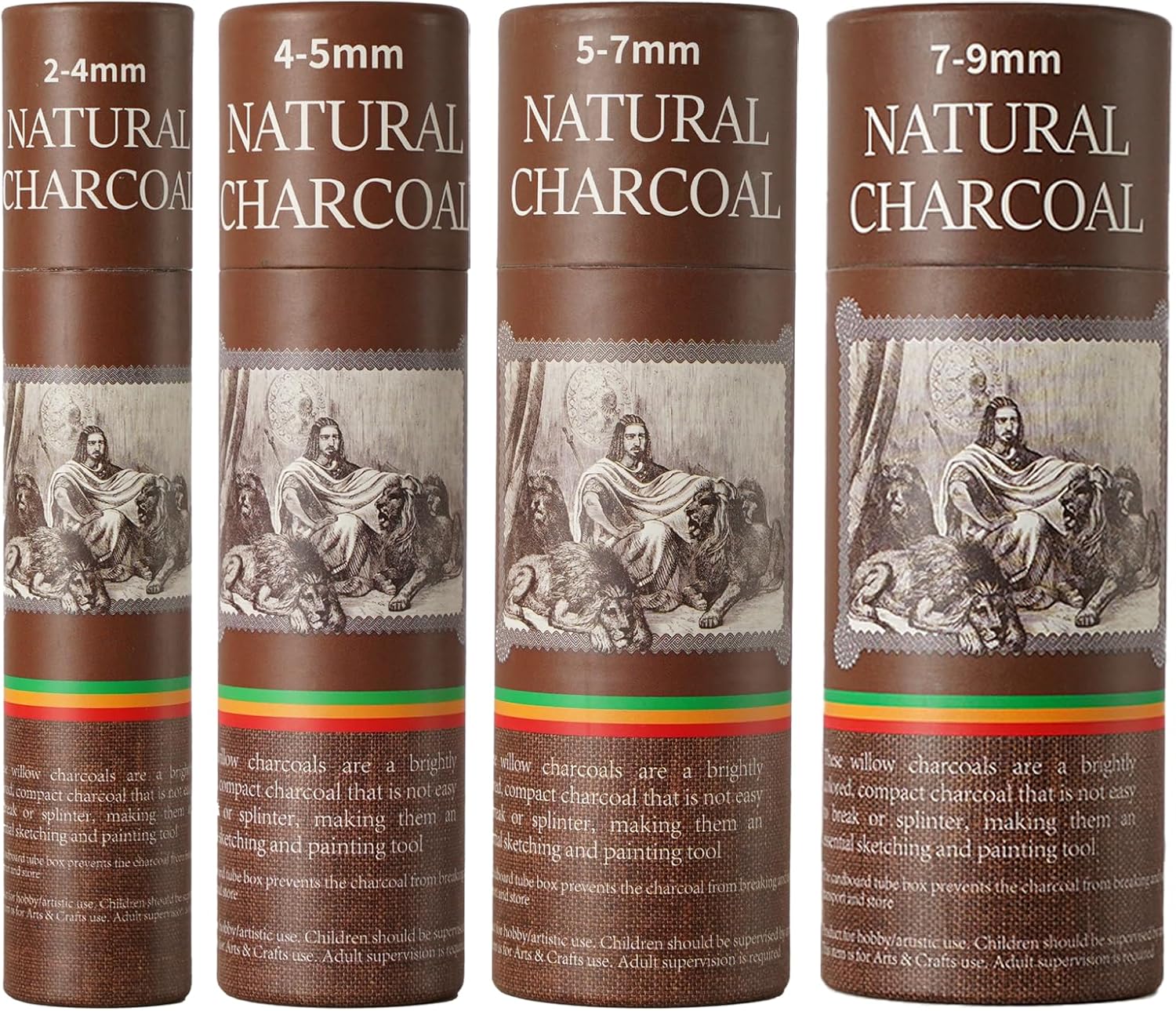 - Premium Willow Charcoal Sticks – 2-4mm, 4-5mm, 5-7mm, 7-9mm, 25 pieces each: These willow charcoal sticks are made from high-quality materials and kiln-fired at high temperatures, ensuring a smooth texture, rich black strokes, and excellent durability. Perfect for charcoal drawing, they are suitable for both beginners and professional artists.
