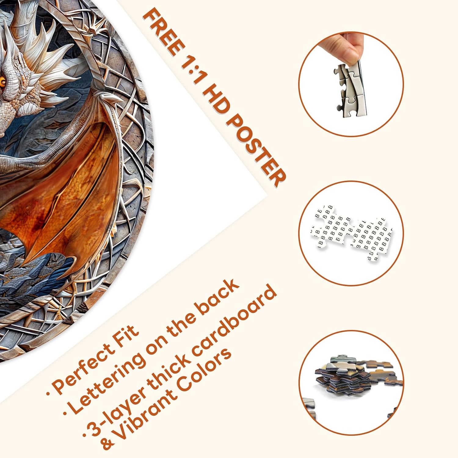 - 【Abnormally Round-shaped Dragon Design】Bored of regular rectangular jigsaw puzzles? Then try to take on the challenge of our unique round-shaped flat puzzle with 3D visual effect when completed. masseruon 1000 piece puzzle for adults features a stunning autostereoscopy visual of a dragon inside a cave, creating a captivating puzzle experience for puzzle lovers