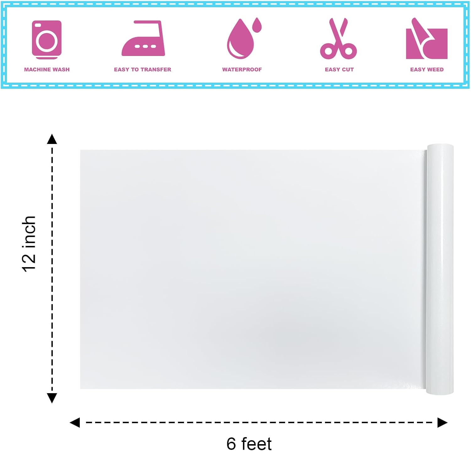 White Glitter HTV Heat Transfer Vinyl 12" x6FT Glitter Vinyl for T Shirts Easy to Cut and Weed Compatible with All Cutter Machines HTV Vinyl Iron on for Cricut (White, 12" x6FT)