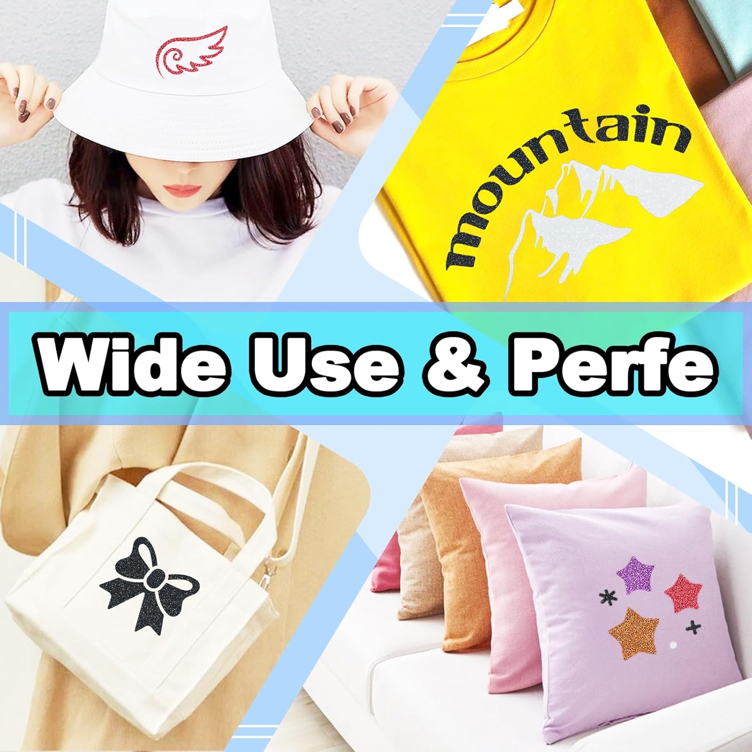 - Versatile Material Compatibility: Perfect for customizing a variety of fabrics like cotton, polyester, and blends, our glitter heat transfer vinyl is excellent for creating custom designs on hats, aprons, and pillows