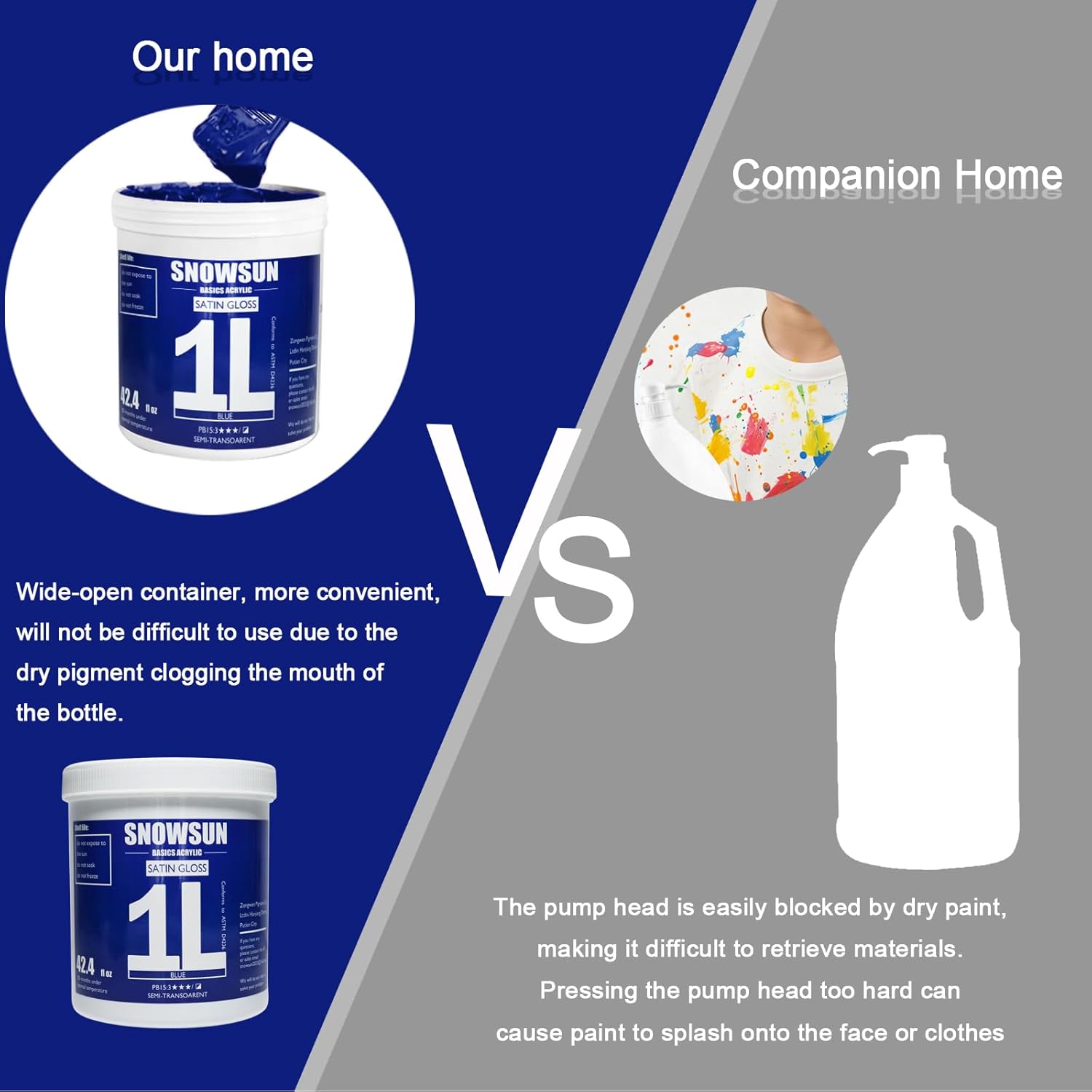 - LARGE BULK ACRYLIC PAINTS - The large volume bulk design of 1000 ml / 42.4 oz combines practicality with efficiency, the wide mouth design allows you to dispense the required amount of paint easily and accurately. A sealed lid ensures that acrylics are leak-proof and retain their freshness for a long time;