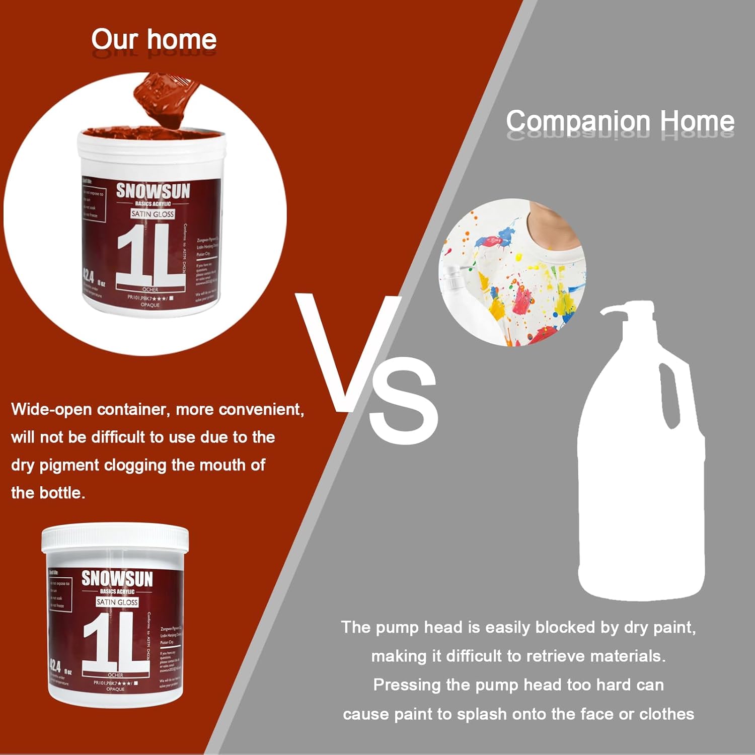 SNOWSUN Ochre Acrylic Paints, Large Bulk Heavy Body Acrylic Paint (42.4 oz, 1L) - Non Toxic Gloss Thick Art Paint for Multi-Surface, Canvas Wood Ceramic and Leather, Stone Craft, for Artists & Beginners