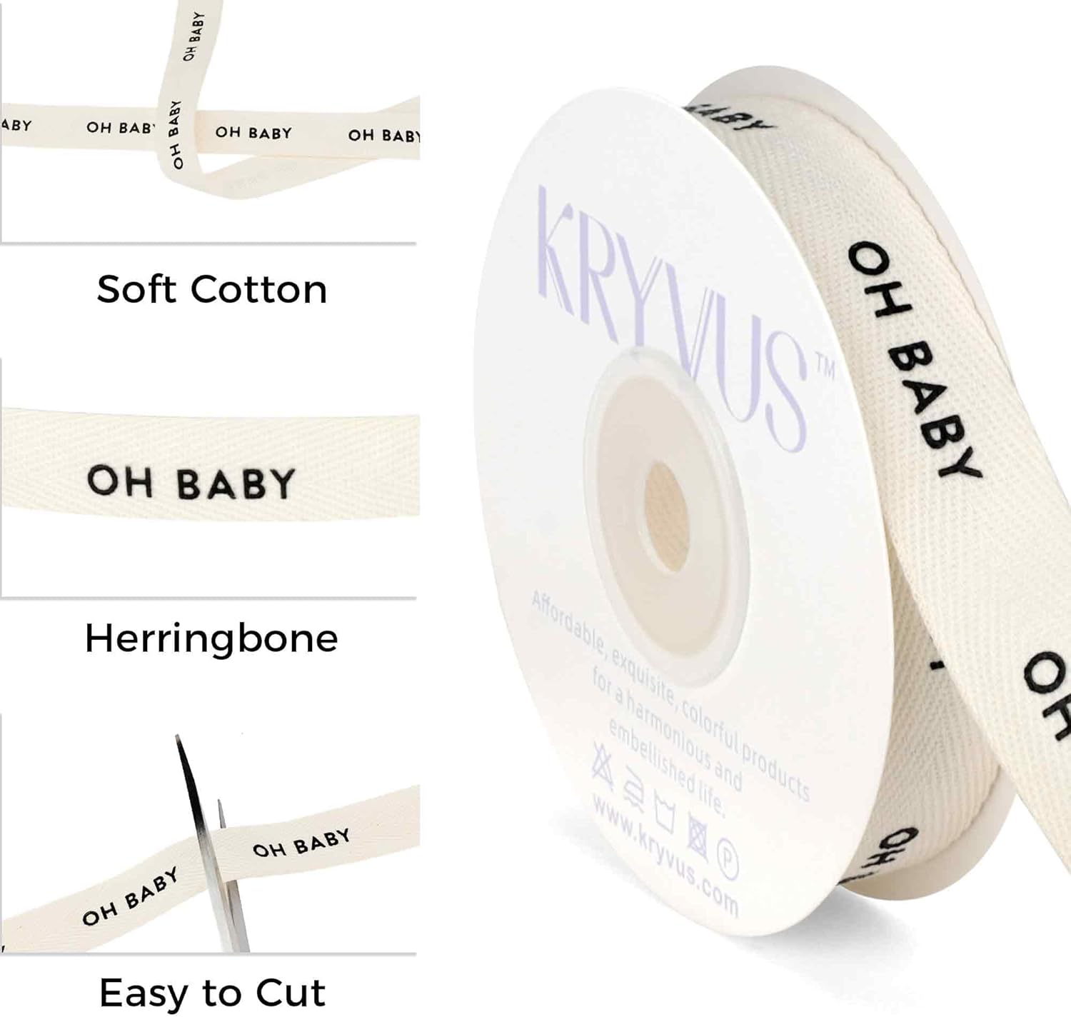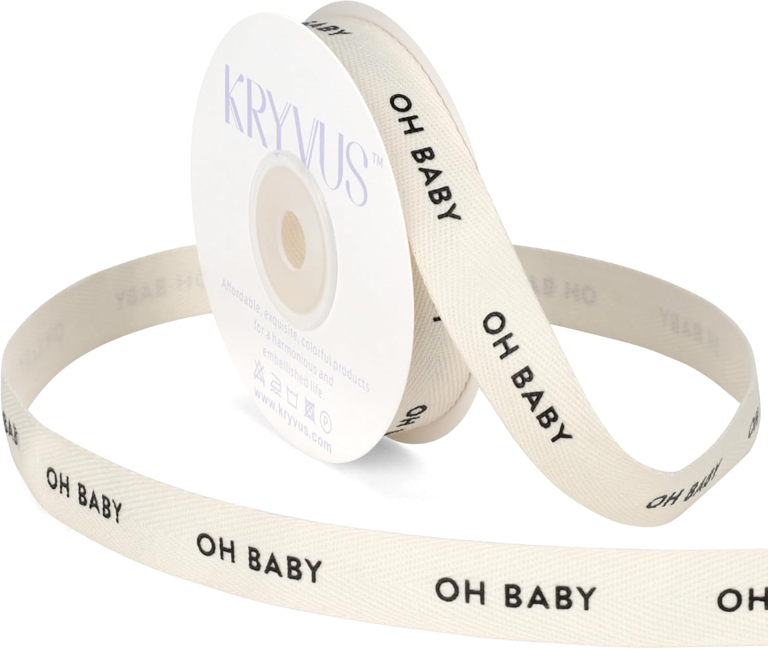 Baby Shower Ribbon - 5/8 Inch x 12 Yards Natural Twill Tape Ribbon, Cotton Herringbone Ribbons for Gift Wrapping, Birthdays, Christmas, Anniversaries, Valentine's Day, Mother's Day(OH Baby)