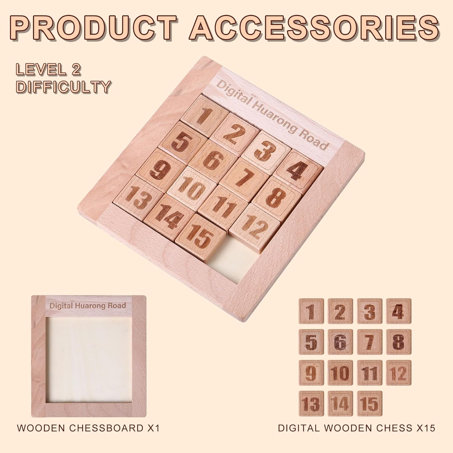 - ✅【HOW TO PLAY?】Shuffle the order, randomly install it on the chessboard, move the squares to rearrange the numbers 1-15. Attention! You need to play on a horizontal tabletop, as the product is made of wood and does not have magnetism, it is easy to fall off and affect your experience!ers.
