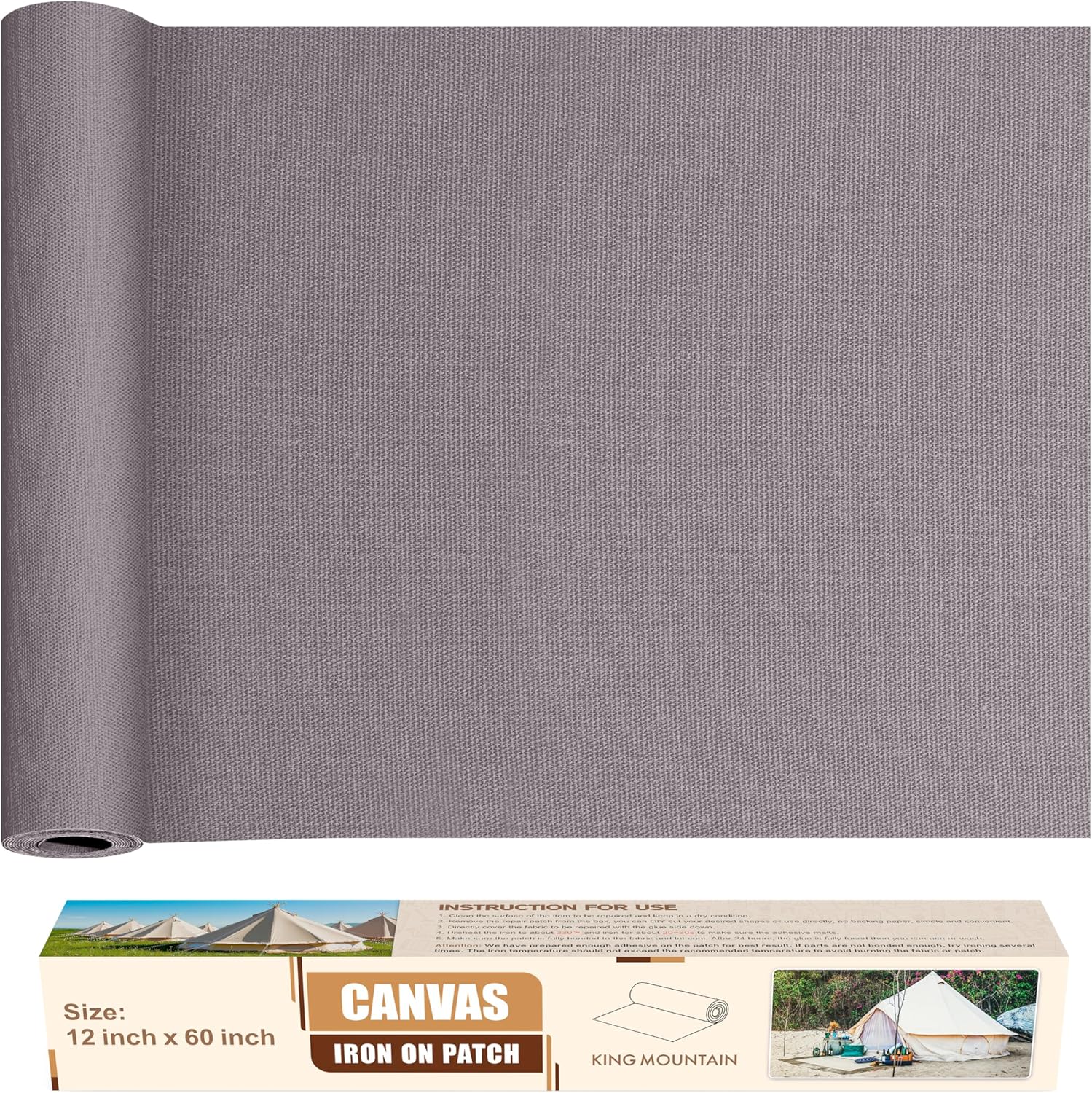 KING MOUNTAIN Canvas Iron on Patch,12"×60",Waterproof 100% Cotton Fabric Repair Patch,Used for Various Sofa,Tent,Clothes,Seats,Suitcases (Light Gray,Waterproof)
