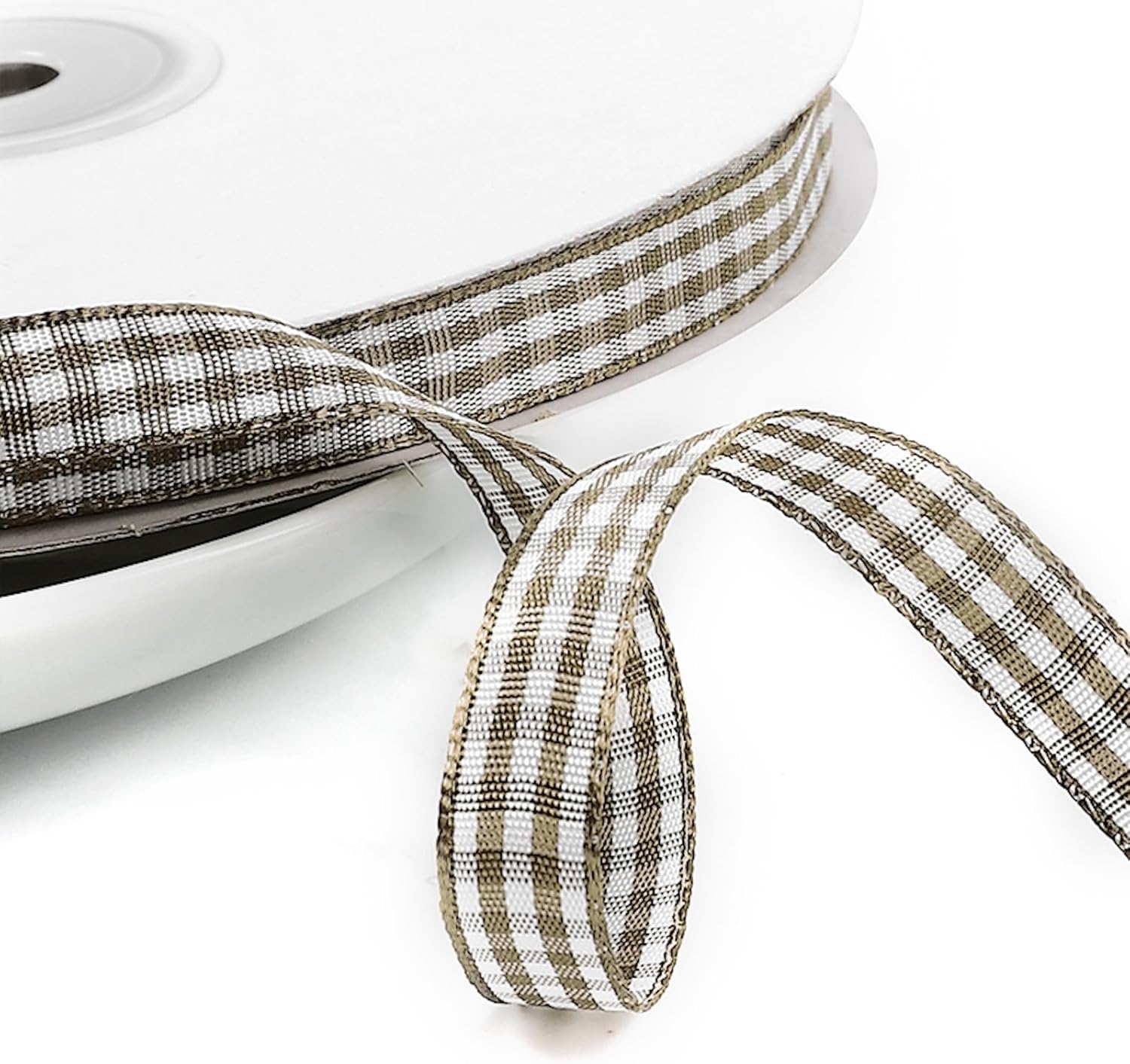 Classic Gingham Checkered Ribbon, Assorted Colors Premium Polyster Plaid Checkered Craft Ribbon for Gift Wrapping, DIY Projects, Hair Bows,Scrapbooking & Party Decor (Deep Khaki, 3/8x50Yd)