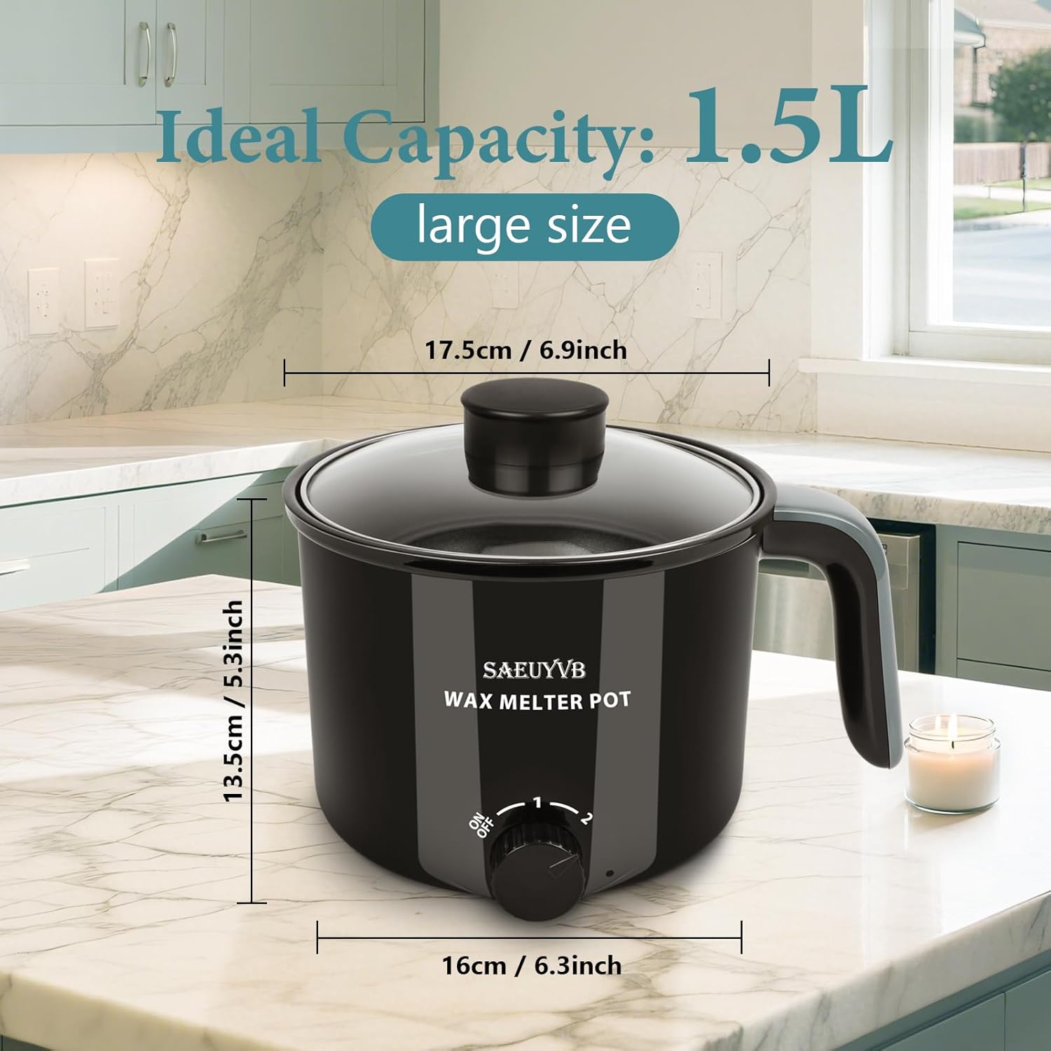 - 🎁【1.5L Wax Melter】:1.5L large capacity wax heater can help you make more candles at once.The set also includes 1 silicone nozzle,1 mixing spoon,1 silicone pad,and 1 manual,making it perfect for DIY candle making enthusiasts.