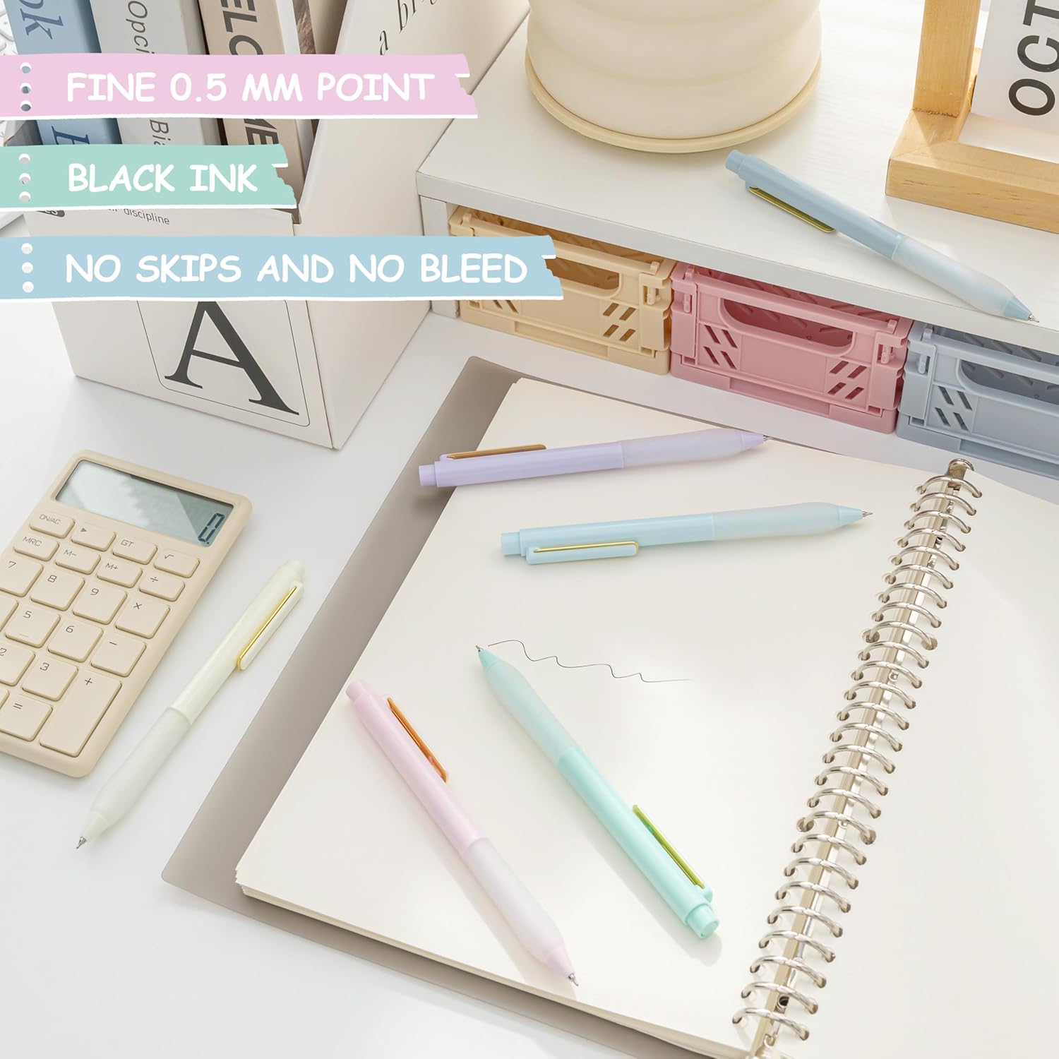 Gel Pens Black Ink Fine Point 0.5mm Retractable Cute Pen for Smooth Writing School Office Supplies (Gold 12-count)