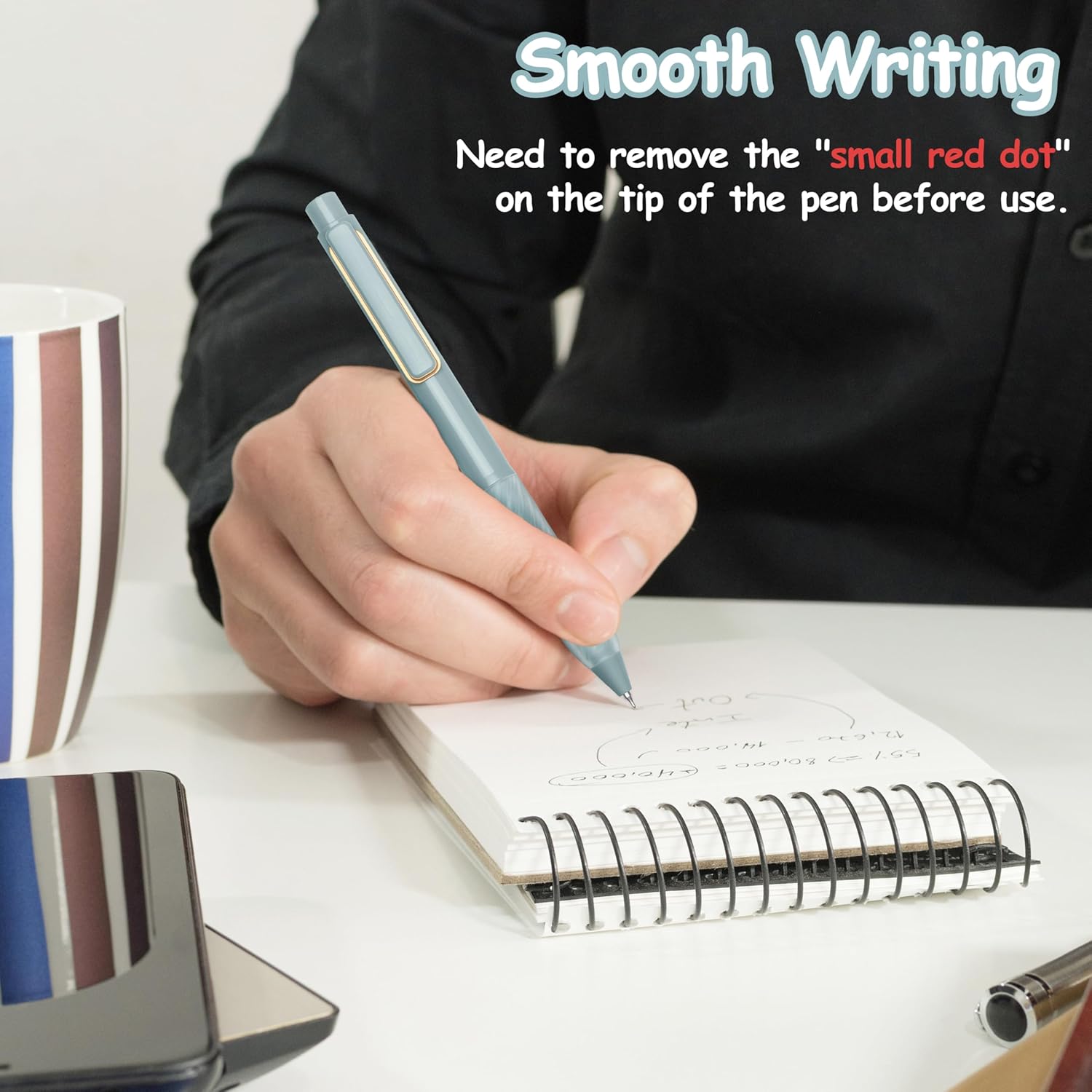 - 0.5 MM Fine Point: Pens fine point smooth writing pens, writes clear. You can use them for all your writing, they don't run through the paper, no smear or bleeding