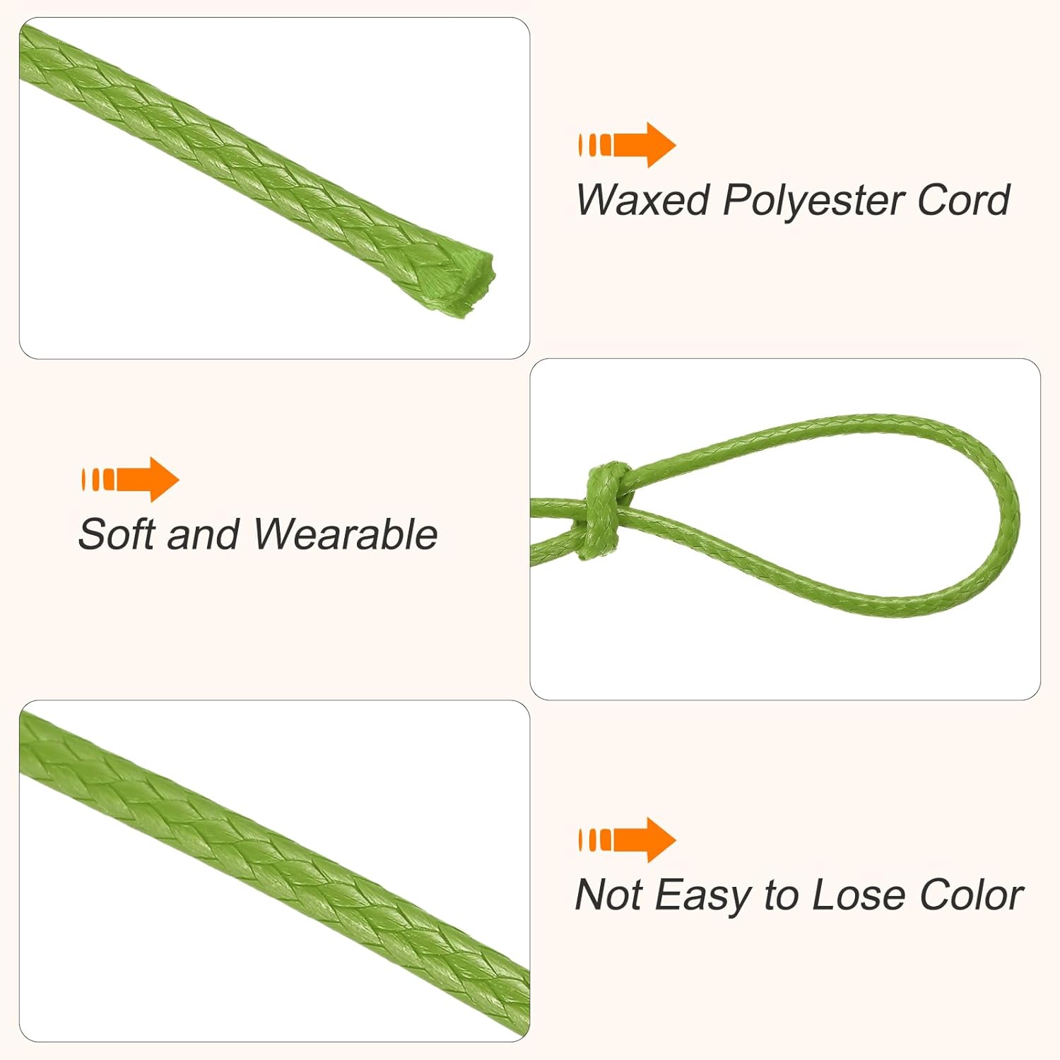 MECCANIXITY Waxed Cord 1mm Waxed Thread 87 Yard Wax String Leather Cord for Bracelet Making, Necklaces, Beading, Jewelry Making and DIY Crafts(Grass Green)