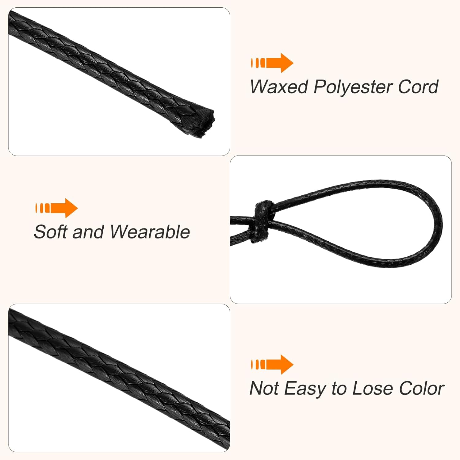 MECCANIXITY Waxed Cord 1.5mm Waxed Thread 87 Yard Wax String Leather Cord for Bracelet Making, Necklaces, Beading, Jewelry Making and DIY Crafts(Black)