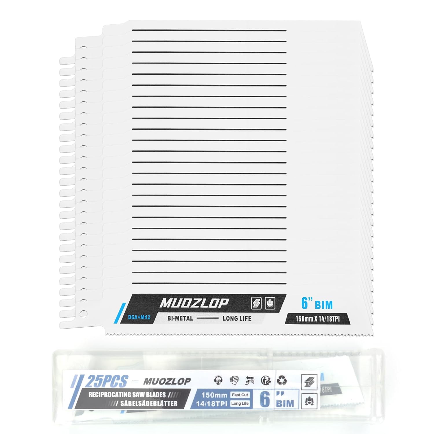 25 Pack 6 inch Reciprocating Saw Blades Set,14/18 TPI High Carbon Saw Blades, Metal Saw Blades with Organizer Case (25, 14/18TPI/150mm)