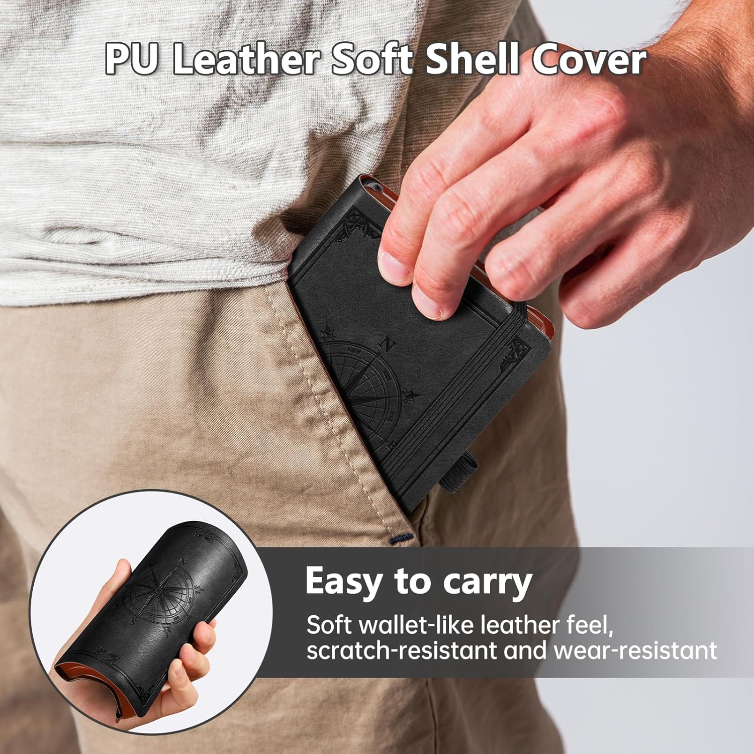 - Soft Leather Cover: The notepad is made of vintage embossed soft leather cover, which is not only high-end and elegant, but also brings skin-friendly and delicate touch, as comfortable as a real leather wallet; the cover is soft and sturdy, anti-scratch and abrasion-resistant, which is not easy to wear and tear when putting it into your pocket or bag, and it also protects your skin from friction