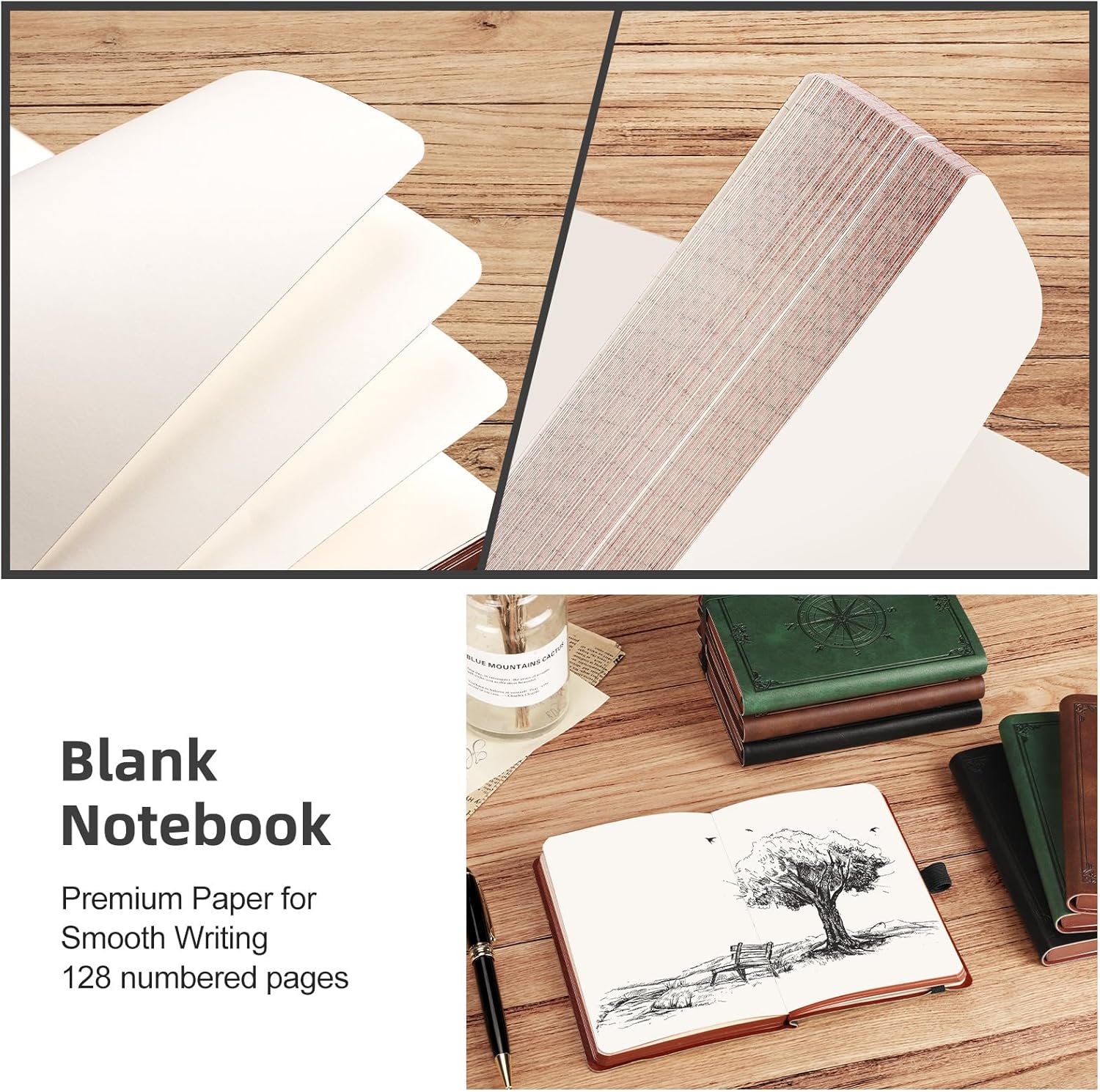 - Humanized Design: The journaling notebooks with an elastic closure and pen holder ring design, allowing writing to begin at any time; the back pocket can be used to store sticky notes, business cards and other small items, practical and convenient