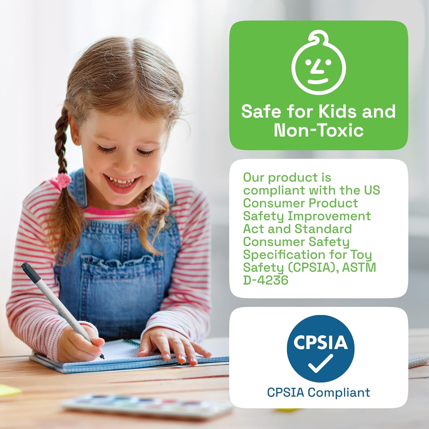 - Non-Toxic & Safe: Each marker conforms to ASTM D-4236 standards. Non-toxic, odorless, and safe for kids, teens, and adults. Suitable for both beginners and professionals, these paint markers are perfect for classrooms, home projects, or studios.