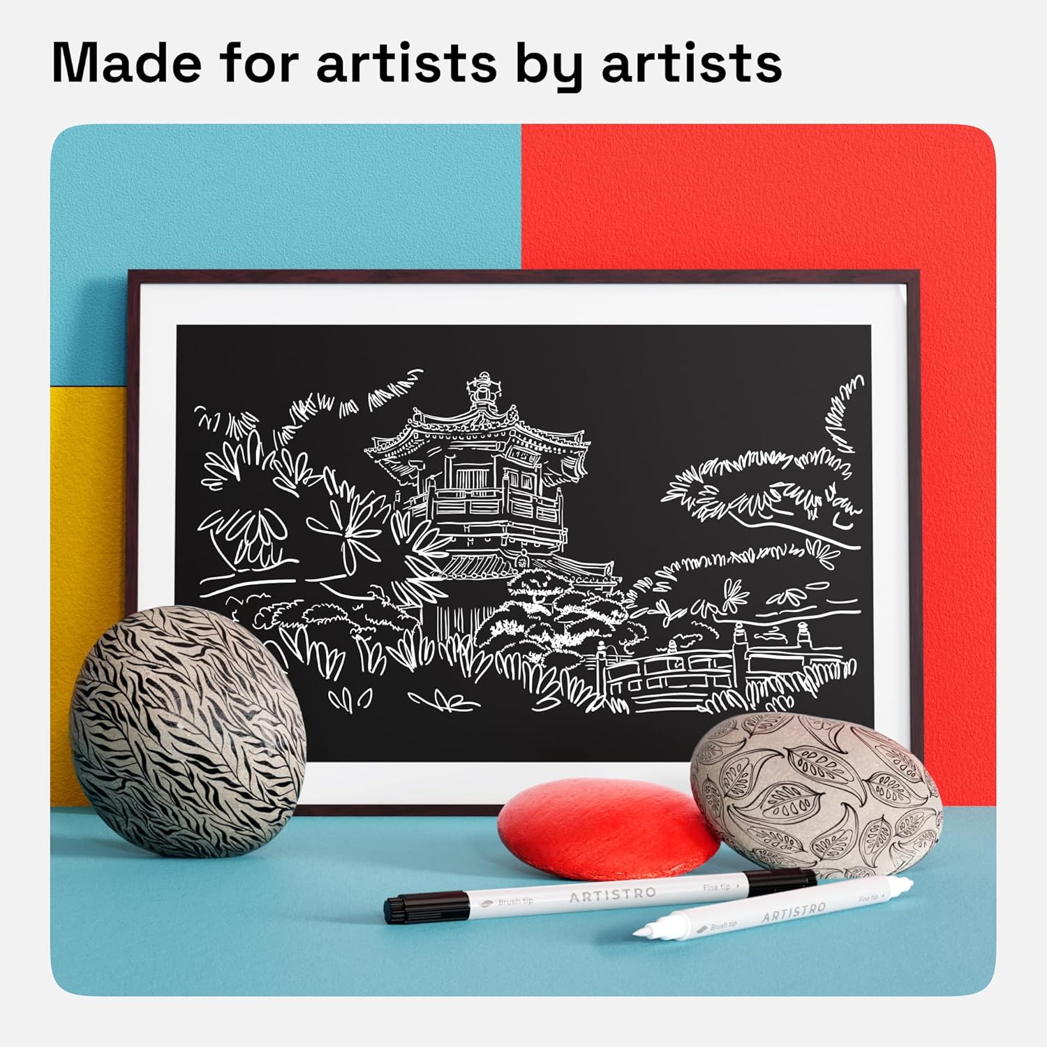 ARTISTRO 2 White Dual-Tip Acrylic Paint Pens - Multisurface Markers for Fabric, Plastic, & More, 5mm Dot + 1mm Fine Tips (Dual Tip Brush + Fine, Black&White)