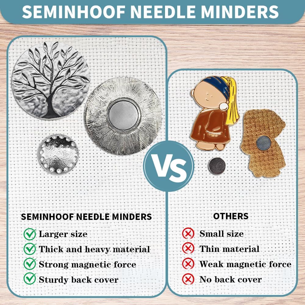- [ Fabric Guardian ] Keep your embroidery projects safe and organized with our Needle Minder Magnet! This handy tool features two strong magnets—one secures to the back of your embroidery hoop, while the other holds your needle in place on the fabric. Simply place your needle down when taking a break, and the magnet will keep it firmly anchored, preventing unwanted punctures or damage to delicate fabrics.