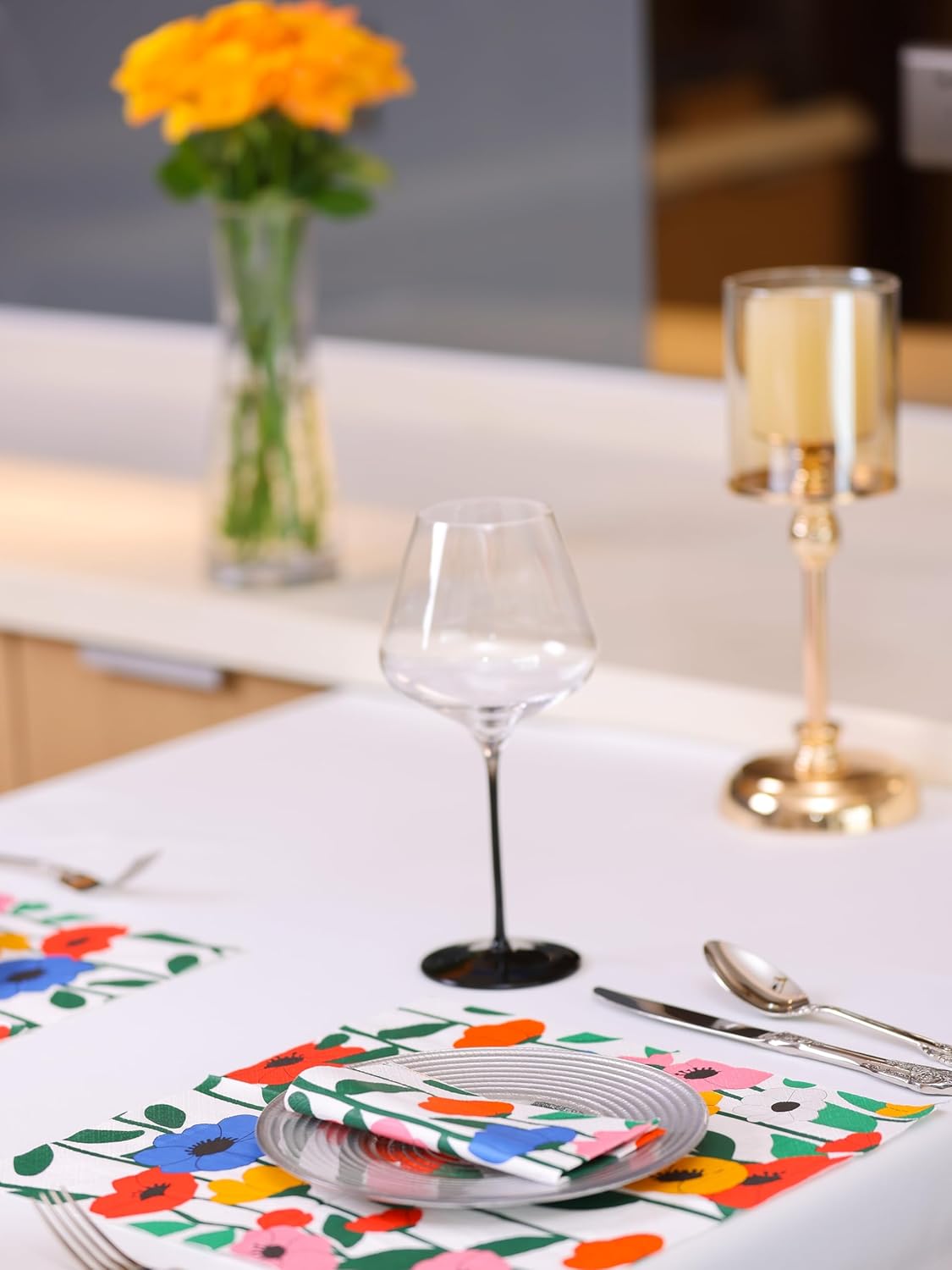 - PREMIUM DESIGN: Beautiful floral pattern featuring vibrant red, blue, yellow, and orange flowers on white background, perfect for elegant occasions