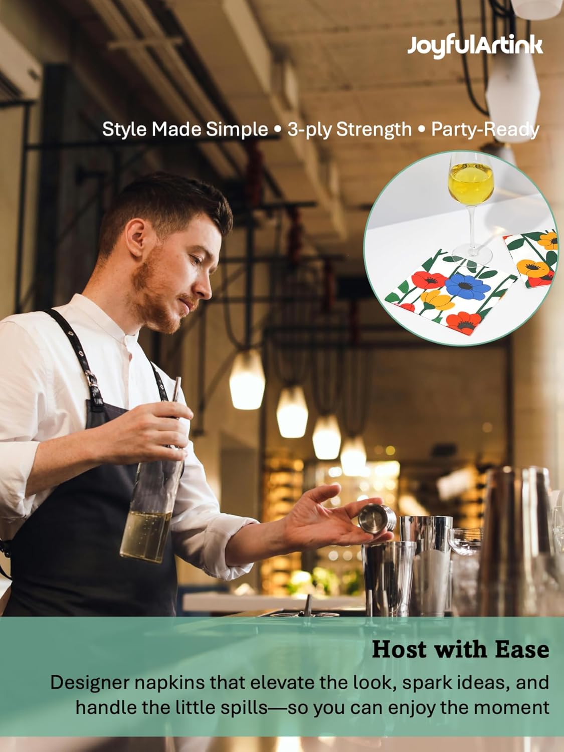 - PACK SIZE: Contains 20 high-quality cocktail napkins measuring 6.5x6.5 inches each, ideal for serving luncheon, dinner, beverages and small appetizers