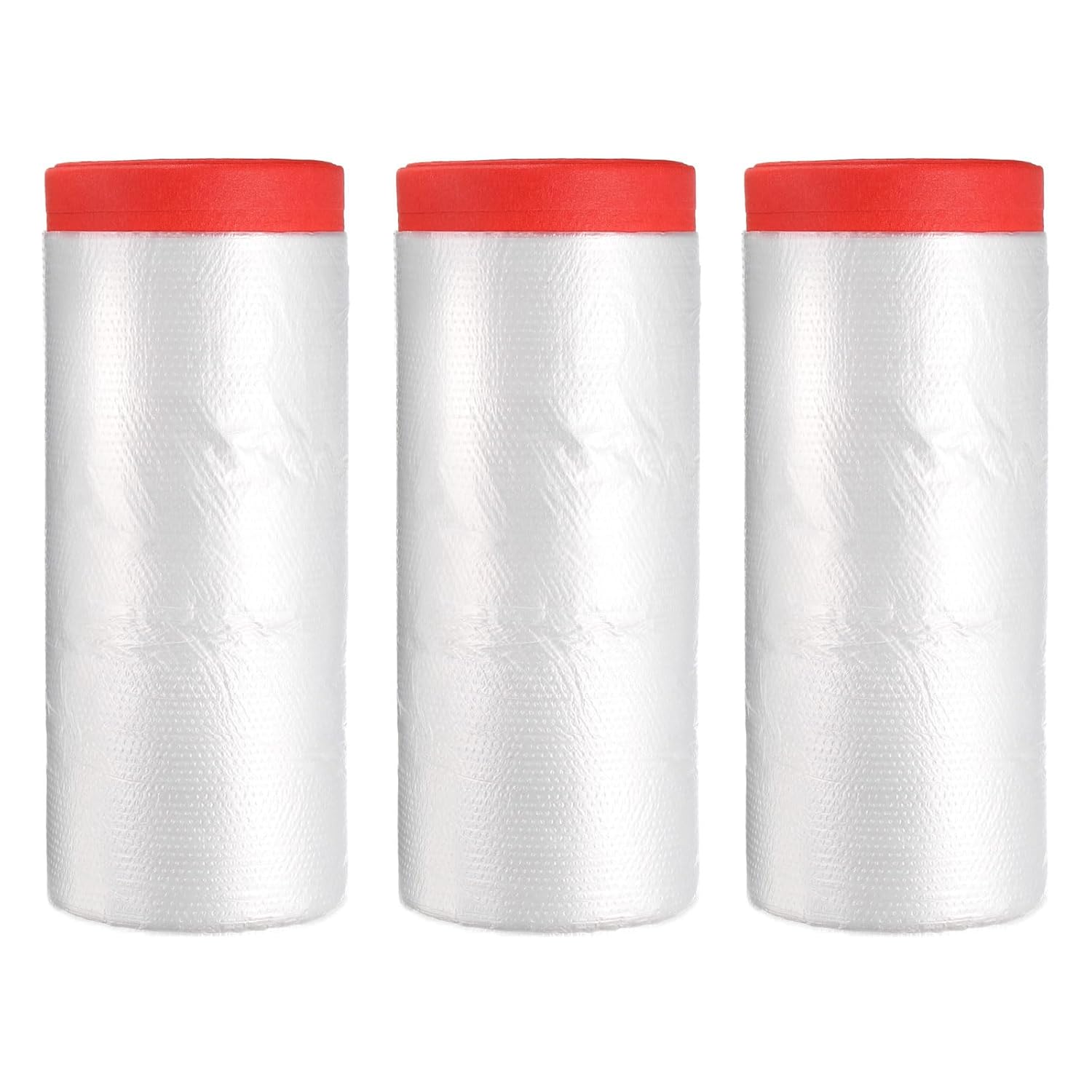 uxcell Pre-Taped Masking Film, 3.6ft x 66ft High-Tack Painters Tape Plastic Drop Cloth with High-Tack Painters Tape for Painting Protection Red 3Pcs