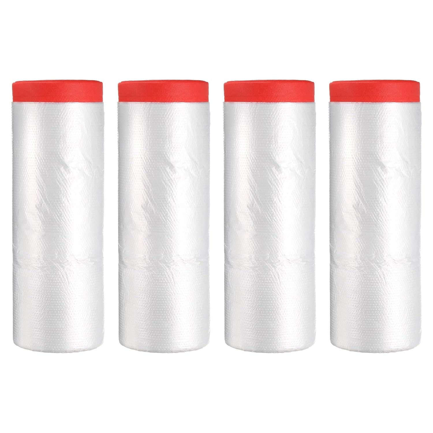 uxcell Pre-Taped Masking Film, 7.9ft x 66ft High-Tack Painters Tape Plastic Drop Cloth with High-Tack Painters Tape for Painting Protection Red 4Pcs
