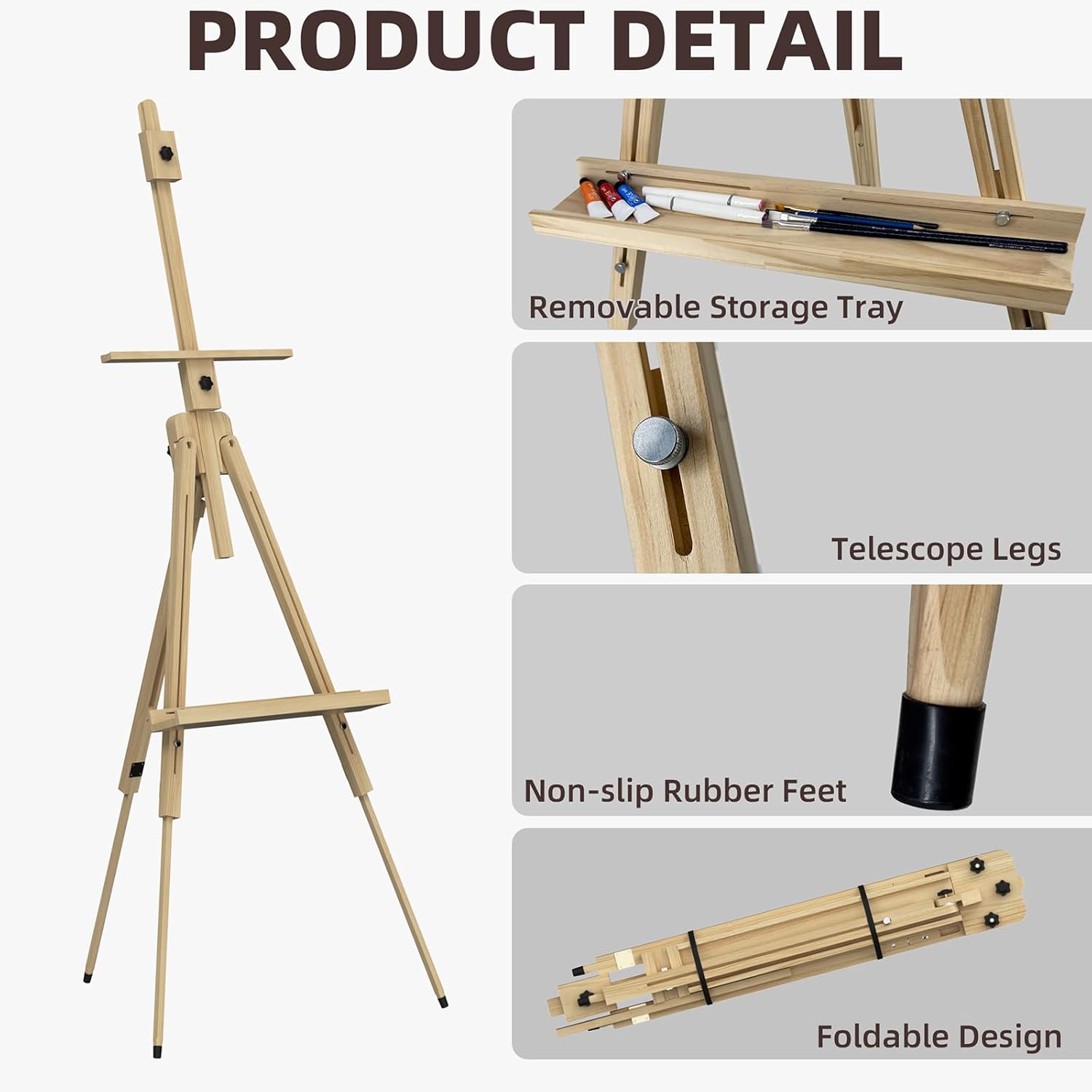 Tripod Easel for Painting, Art Wooden Easel Stand for Adults or Students, Hold 1 or 2 Canvas up to 60’’, Display Portable Easel for Drawing, Landscape Artist, Wedding Sign, Pine