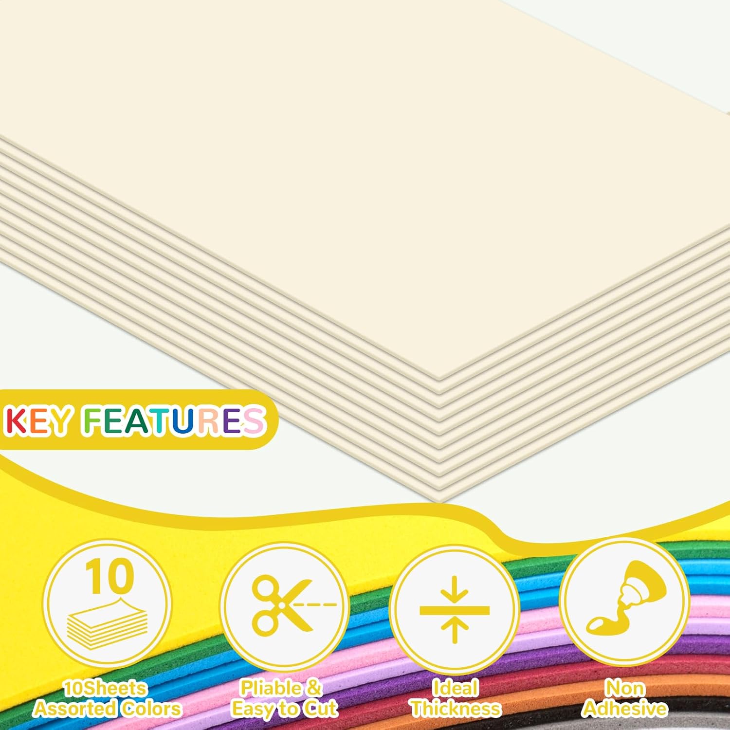 10 Pack Foam Sheets Craft 8 x 12 inch, Eva Color Foam Paper for Art Crafts Projects, Classrooms Scrapbook Gift DIY Cutters Card Party Decoration (Ivory)