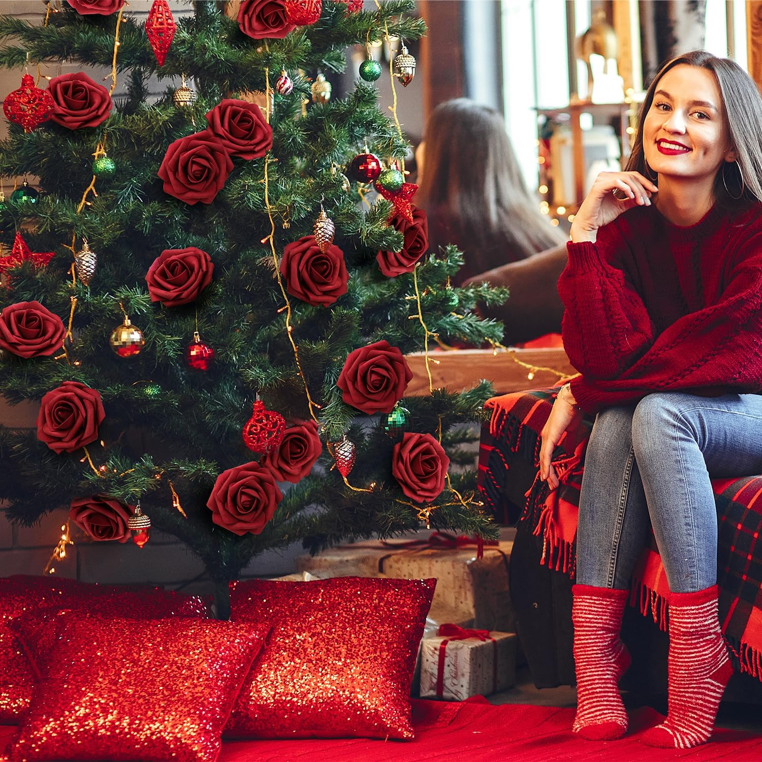 - Realistic Design & Premium Materials: Each box includes 25 artificial roses, each paired with a detachable flexible stem. Crafted from high-quality soft foam, these fake roses are full-bodied and velvety to the touch, capturing the petal and shape of real roses. Their vivid appearance adds a natural charm to any space
