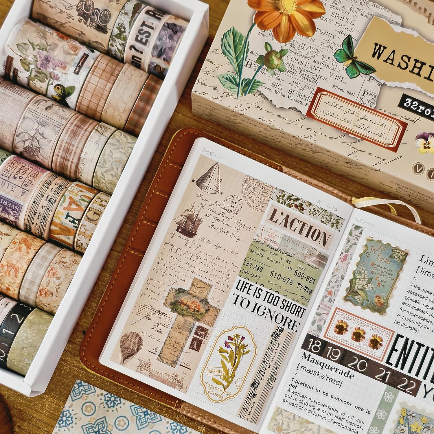 - These vintage washi tapes come beautifully packaged in a retro-style box, making them a charming gift for friends, classmates, daughters, or anyone who loves junk journaling. A box full of creative fun and nostalgic charm
