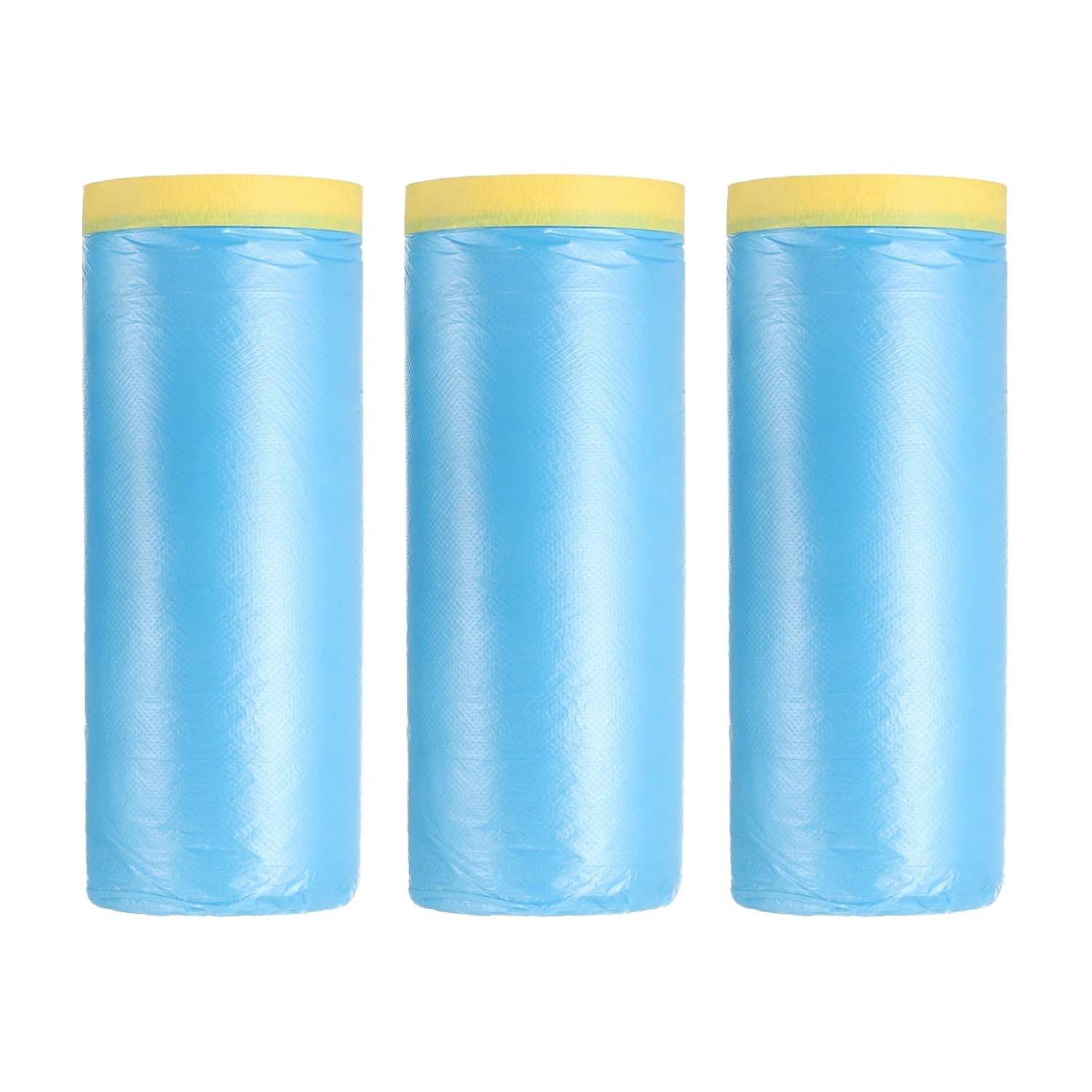 uxcell Pre-Taped Masking Film, 4.9ft x 82ft Plastic Paint Drop Cloth with Medium-Tack Painters Tape for Painting Spraying Protection Blue Film 3Pcs