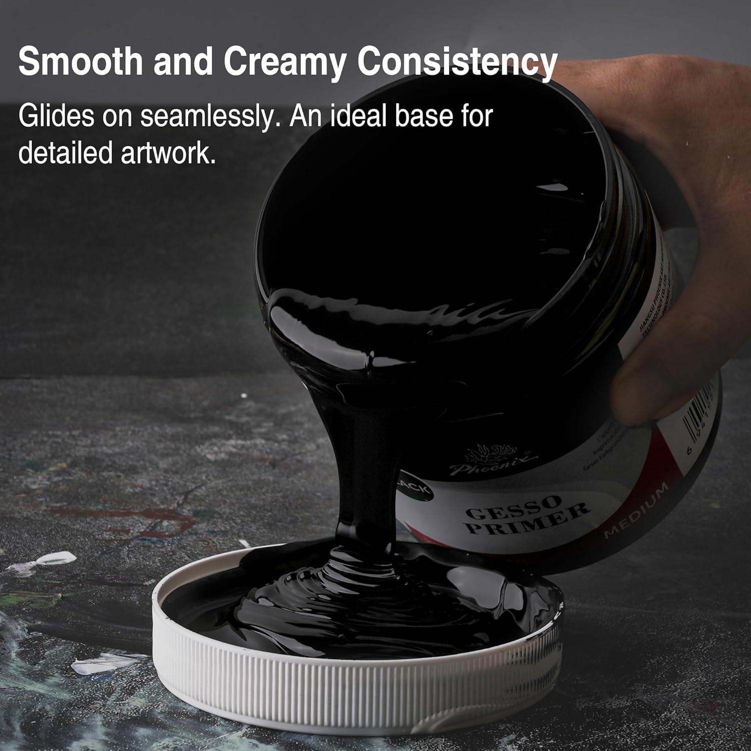 - Premium Acrylic-Based Black Formula - Made with high-quality black acrylic emulsion, PHOENIX gesso is non-toxic, acid-free, and odorless. Its smooth, opaque black base provides superior coverage while meeting international safety standards (ASTM D-4236).