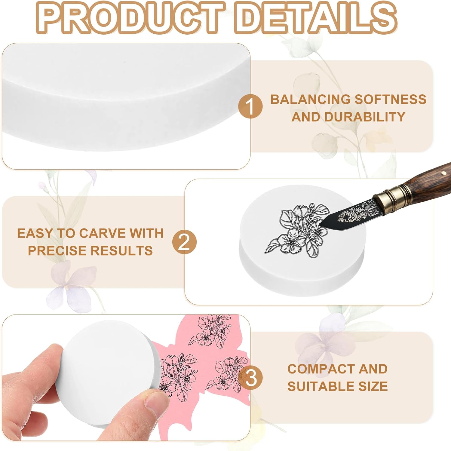 - Advantage: Rubber stamp block is soft yet durable, balancing softness and durability, easy to carve with precise results, suitable for complex designs and clear stamps. The material is flexible and resistant to cracks, ensuring the stamp is durable and reusable.