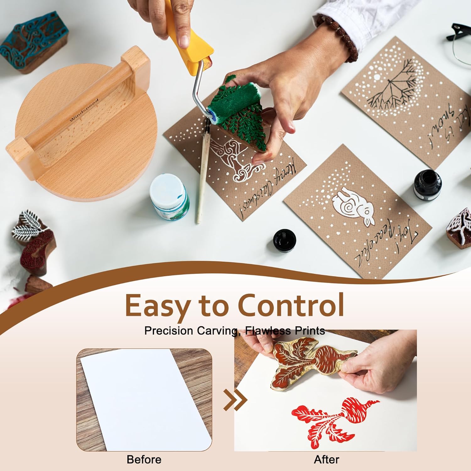 - Thoughtful Accessories and Attention: Purchase will receive a free cleaning cloth. When using the printmaking baren, be careful to avoid colliding with hard objects to prevent damage to the wooden surface and affect the printing effect.