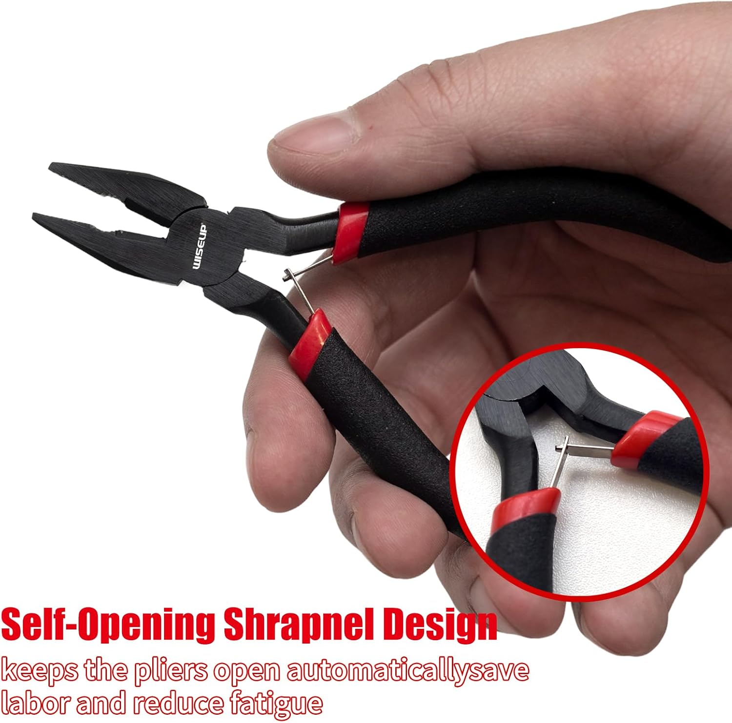 - Self-Opening Shrapnel Design:These mini pliers are equipped with a double popper that keeps the small pliers open automatically. The lever design allows you to grip and squeeze the handles with less effort