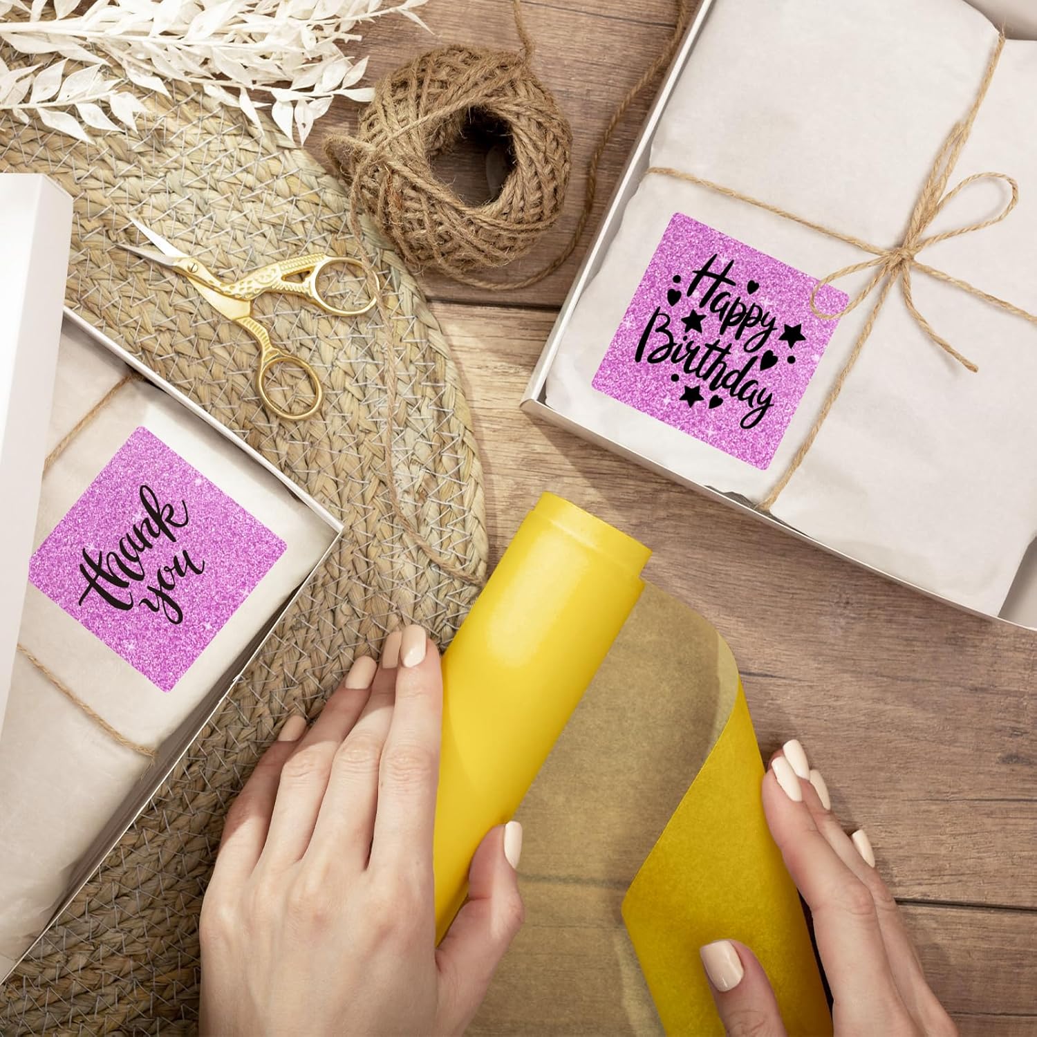 Square Thermal Labels Stickers 2" x 2", Holographic Thermal Stickers Labels, Waterproof Glitter Direct Thermal Printer Label for Small Business- Holographic Pink
